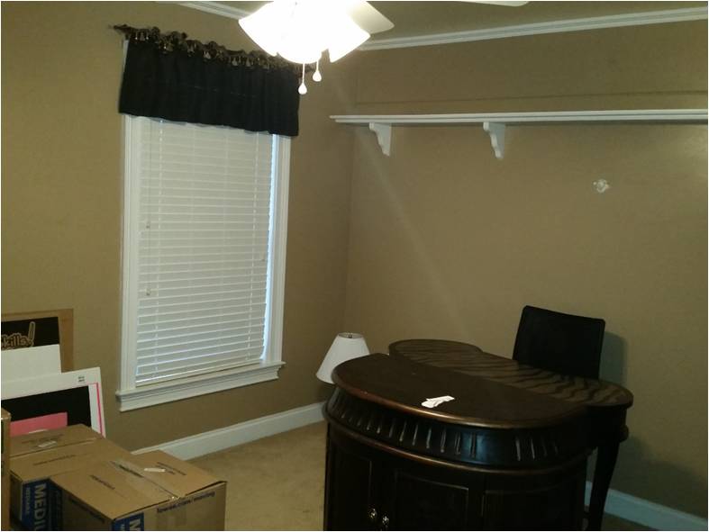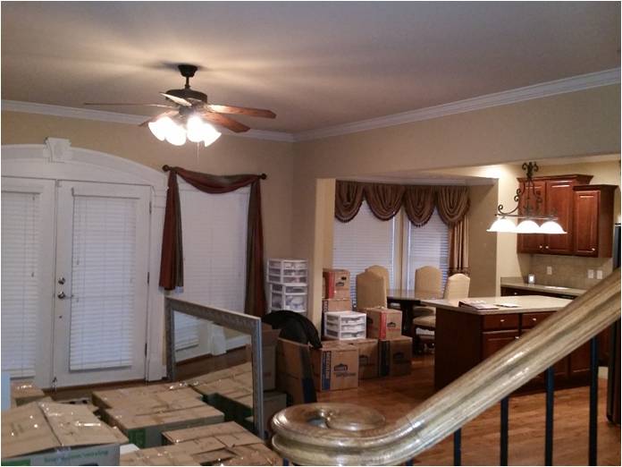 Interior: Your furniture and décor are placed in the center of the room, covered with new plastic, and all flooring is protected with drop cloths.