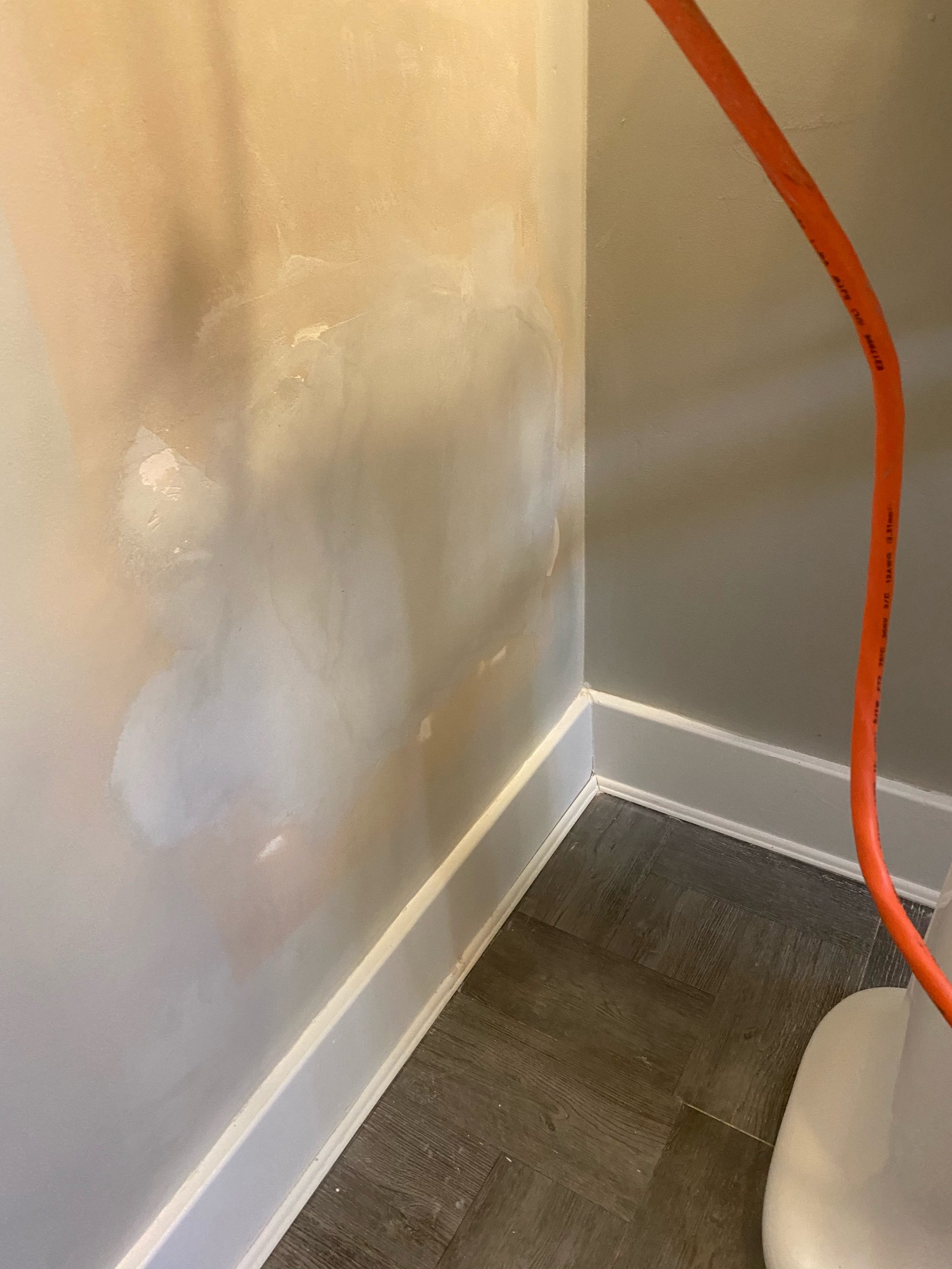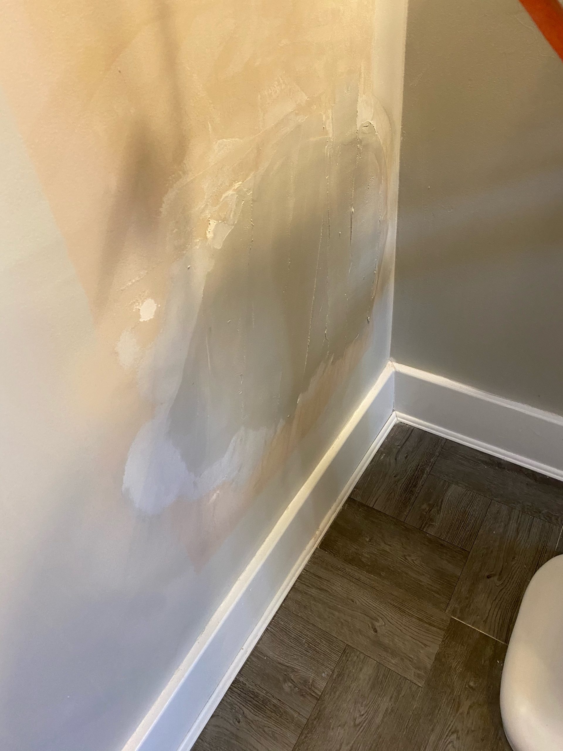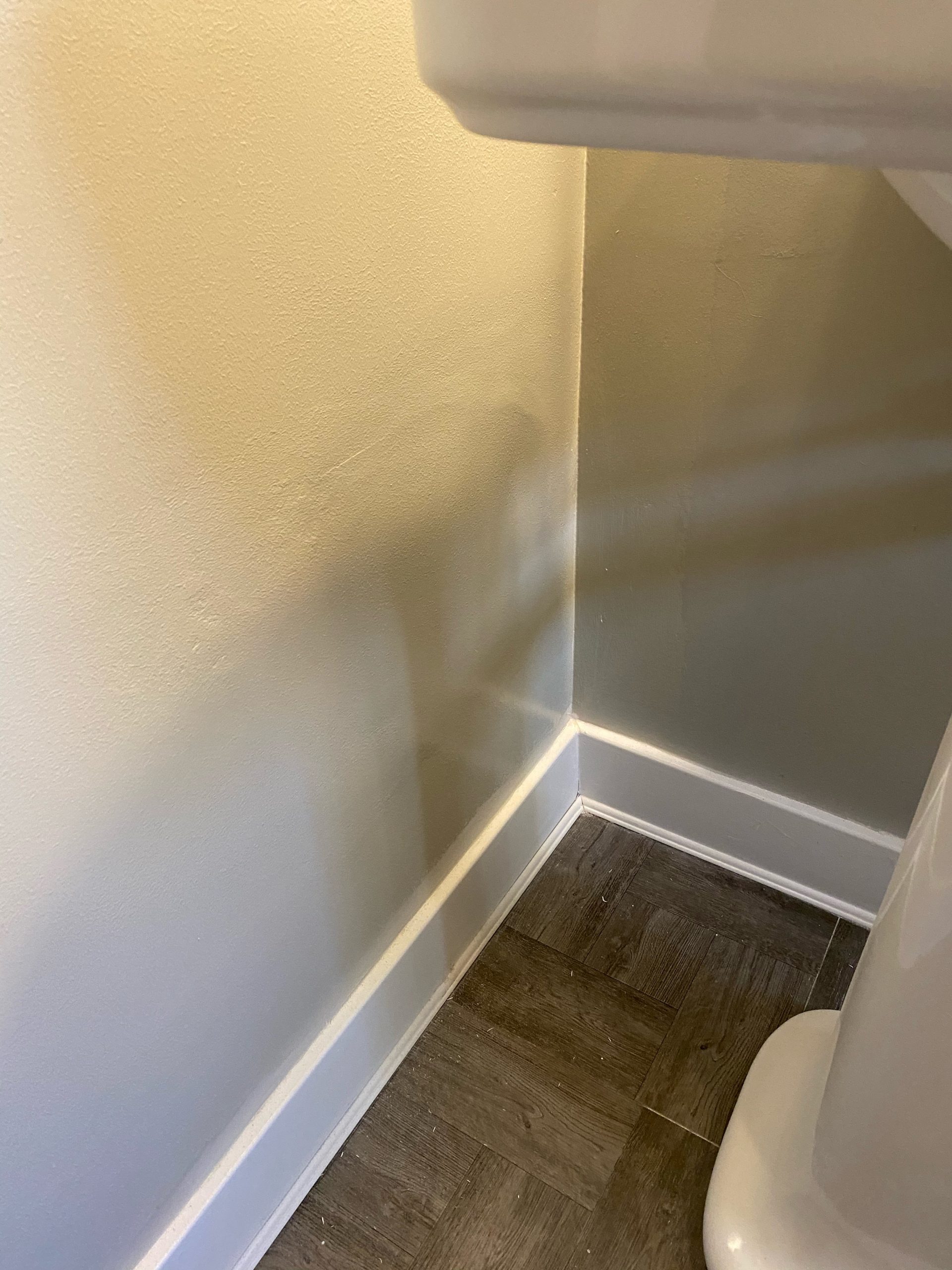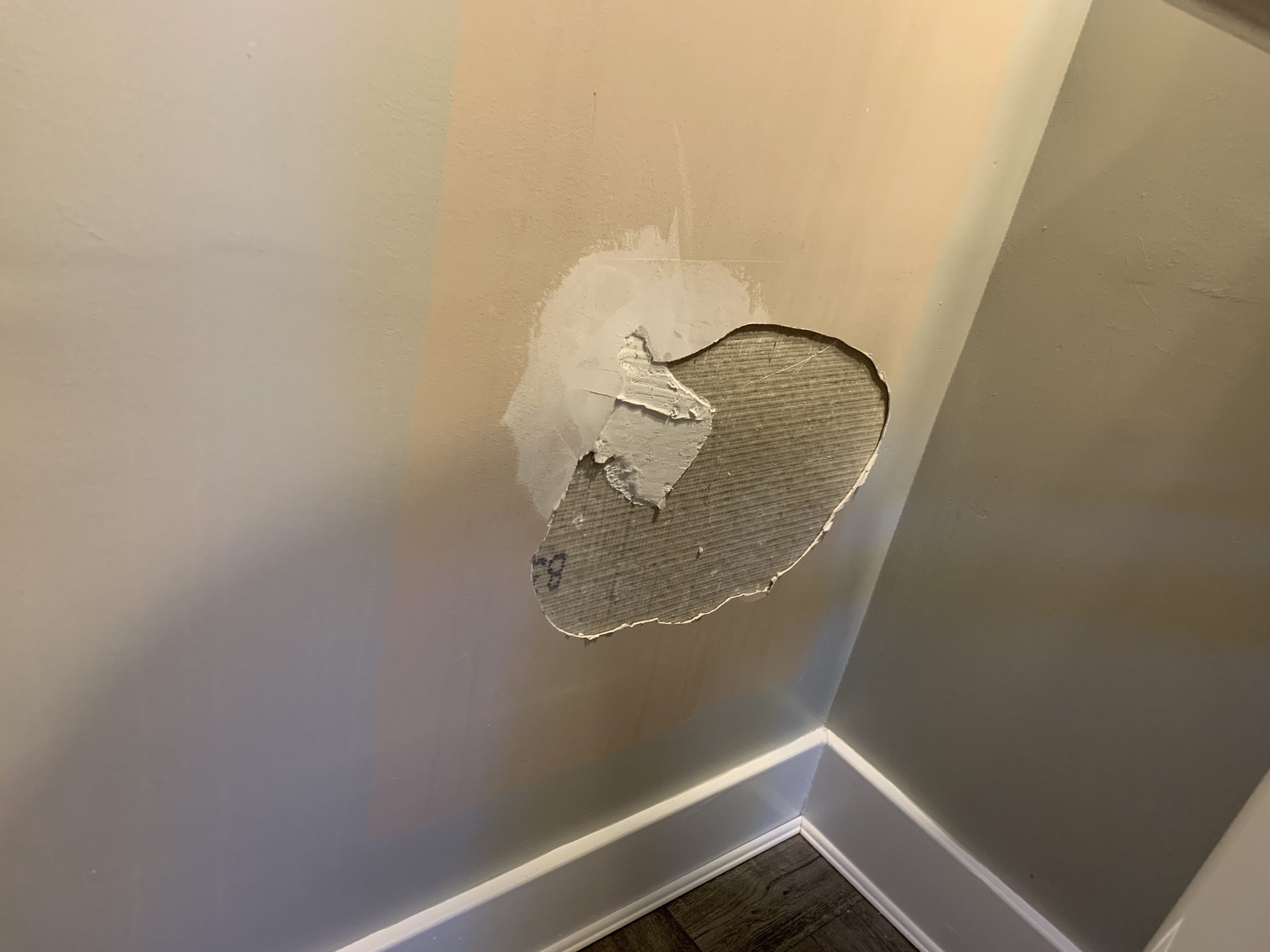 This customer had a hole in his plaster wall that needed to be repaired. Our team used a material called Bondo All-Purpose Putty to repair it. Then we spot primed this area and painted the wall for a uniform look.
