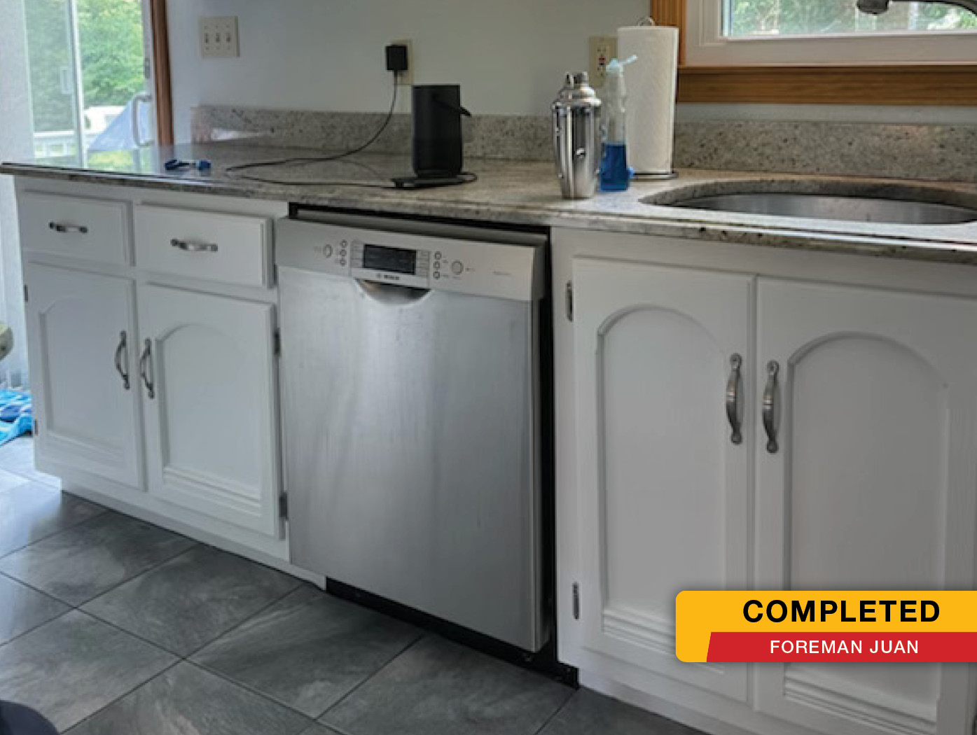 Our customer was looking for a kitchen makeover with cabinet painting. She opted for Sherwin Williams’ Extra White in a satin sheen to make them look more modern.