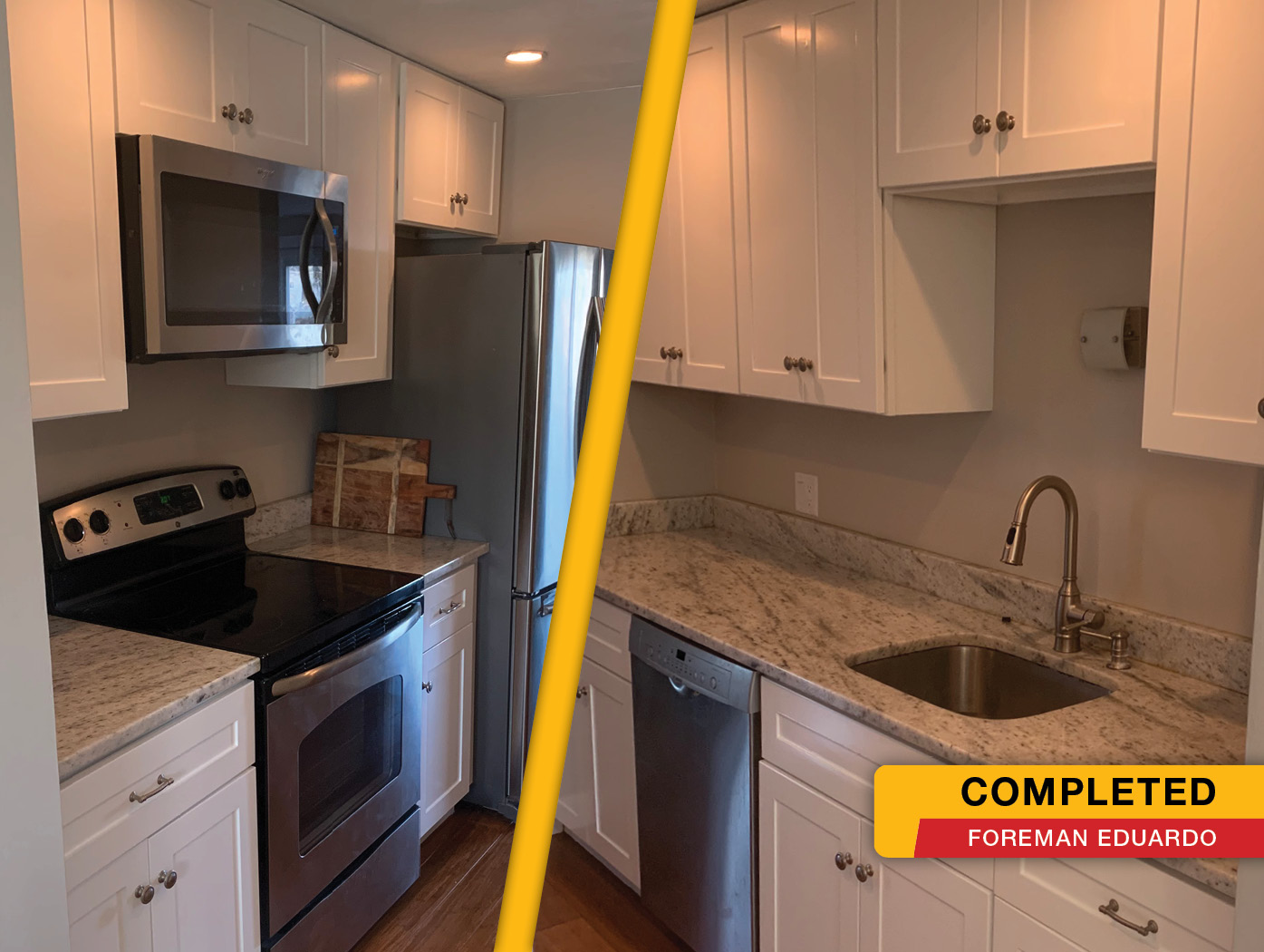 Our customer was looking for a kitchen cabinet makeover. Our CertaPro painters took our client’s cabinets from a light gray to a bright, extra white, semi-gloss finish.
