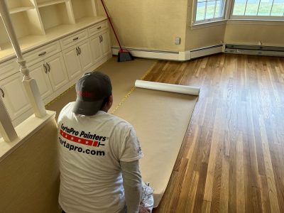 The paint will dry within a few hours, and you do not need to vacate the house while this is happening. The crew removes all the painting materials and coverings. We sweep your floors and carpets and put everything back exactly where we found it while paying close attention to doing a thorough job cleaning the work area.
