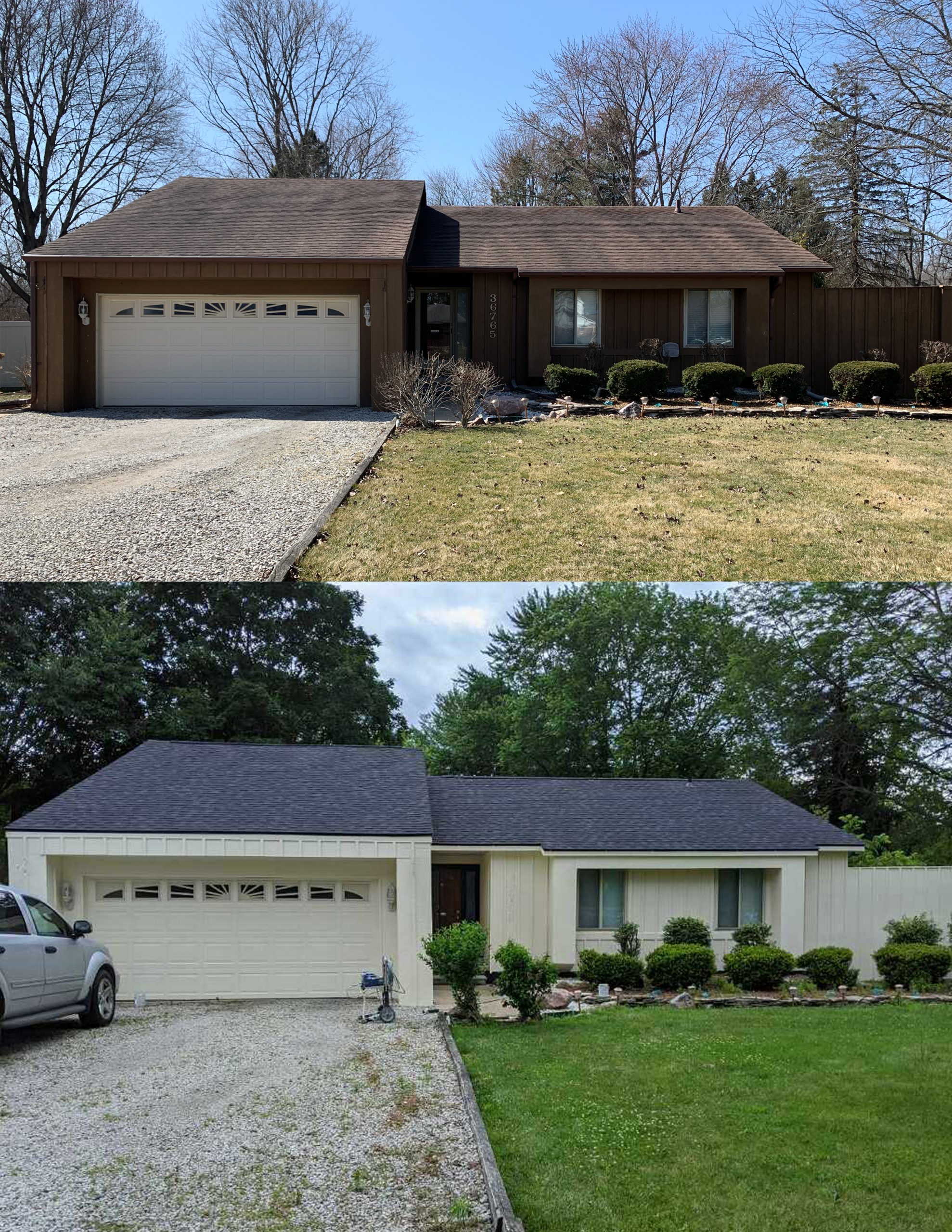 This contemporary house lights right up with a coat of creamy white. The details of its siding are now visible and add both interest and curb appeal.
