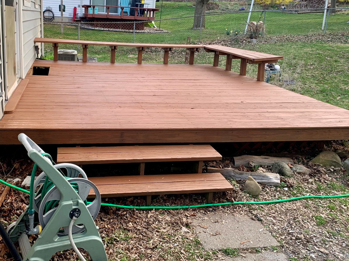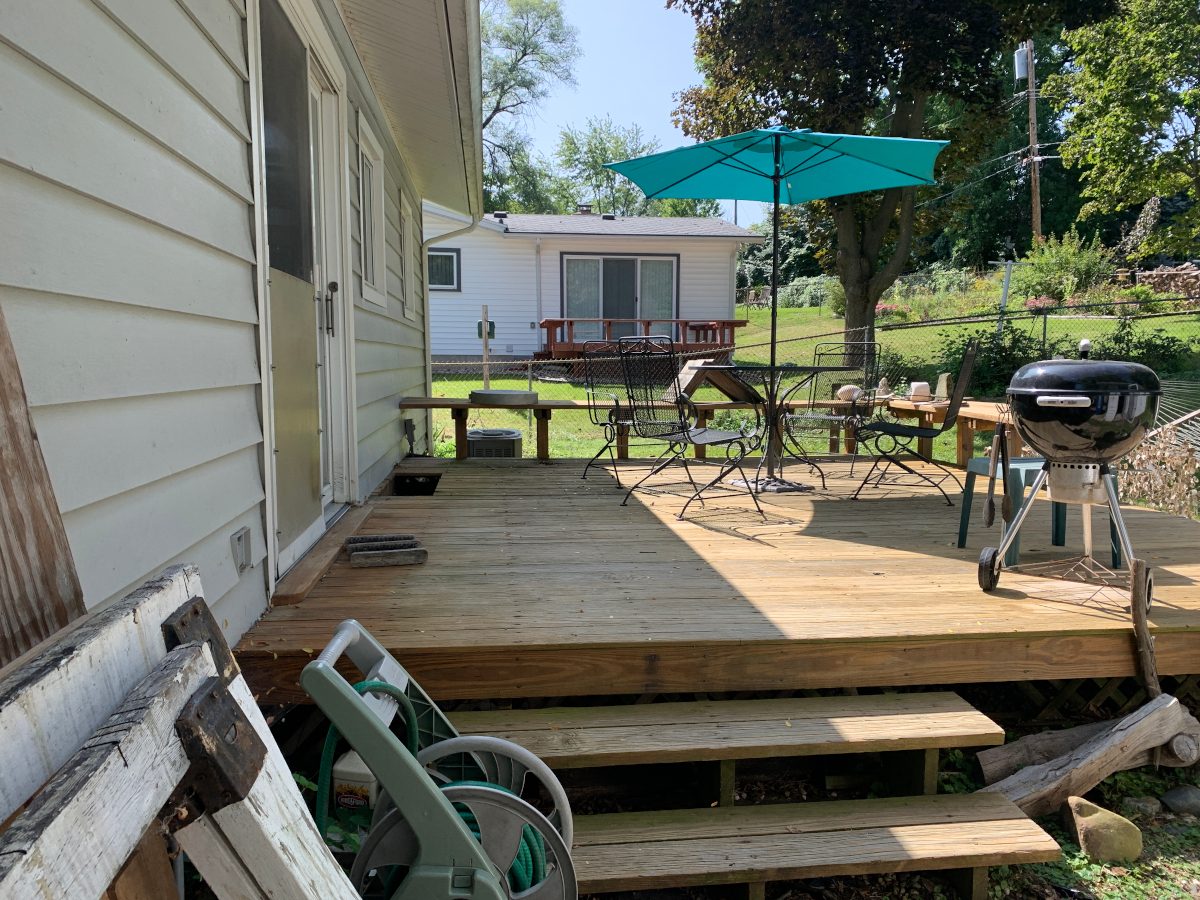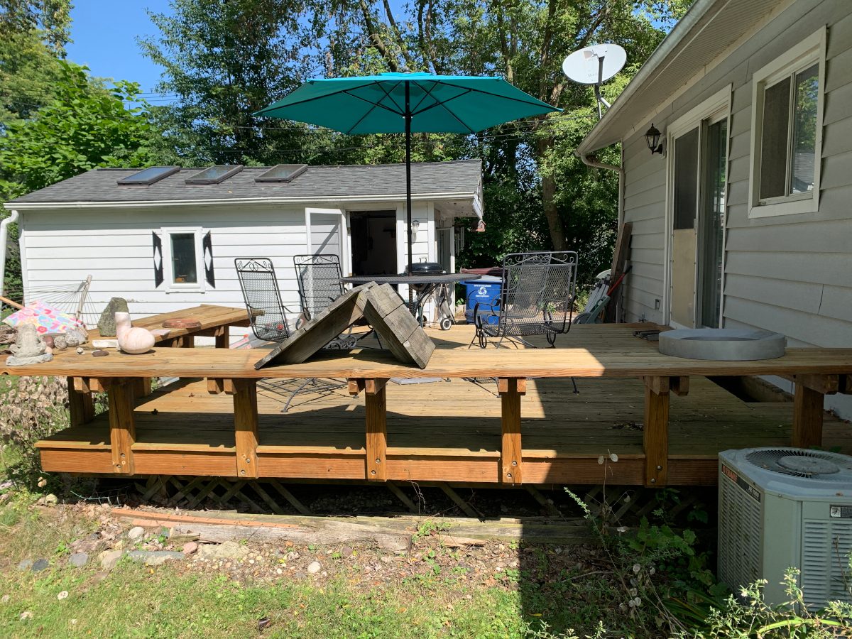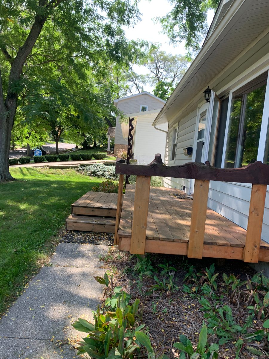 We breathed some new life into a special artist’s exterior enclave by scraping all the old, peeling flaking paint and also refreshing the deck surfaces. 4 before pictures and four after.