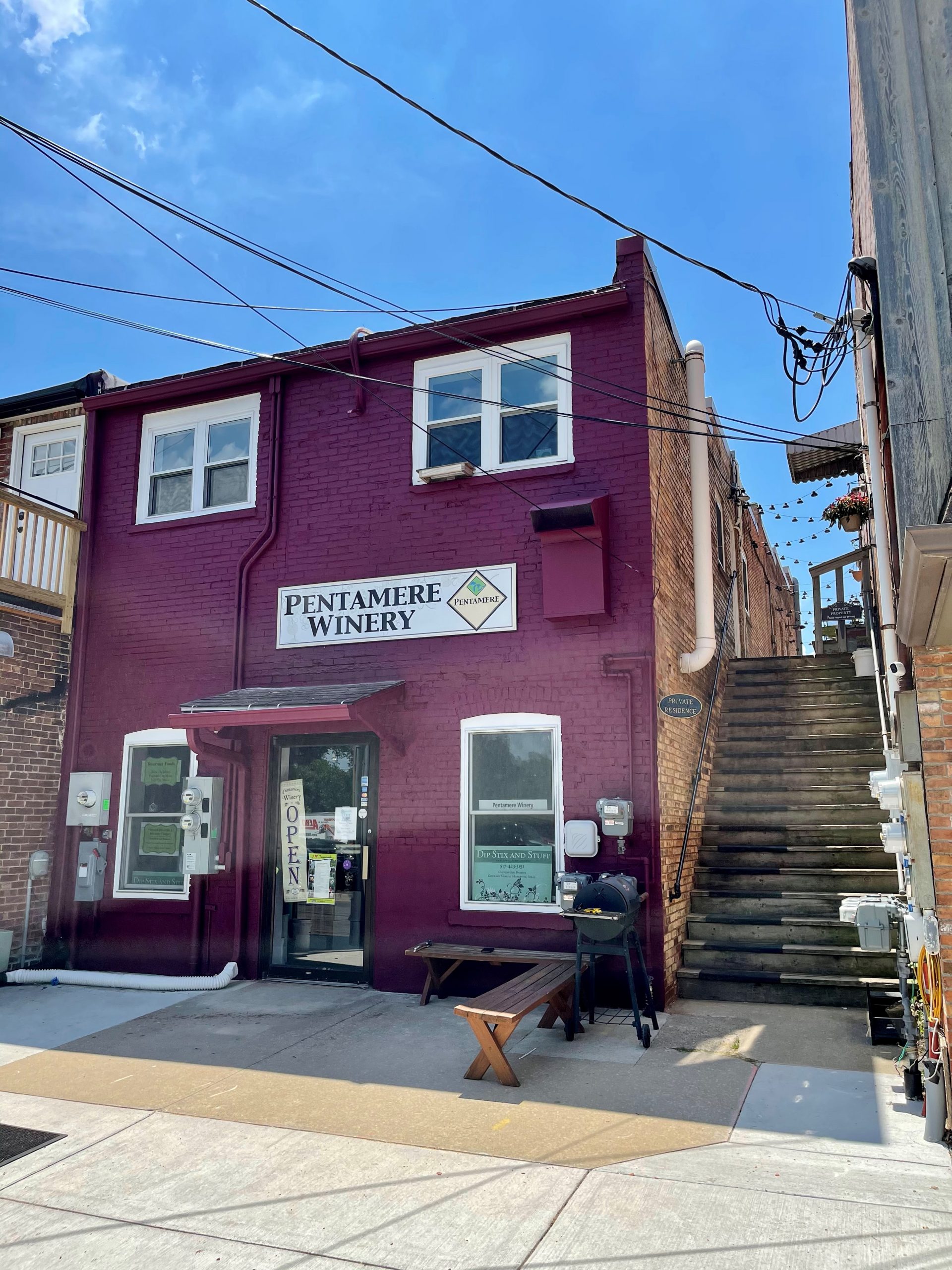 This local winery, located in a historic building in Tecumseh, had a masonry repair to the back of the building followed by a repainting. The color reflects the purpose of the building with an eye-catching wine hue.