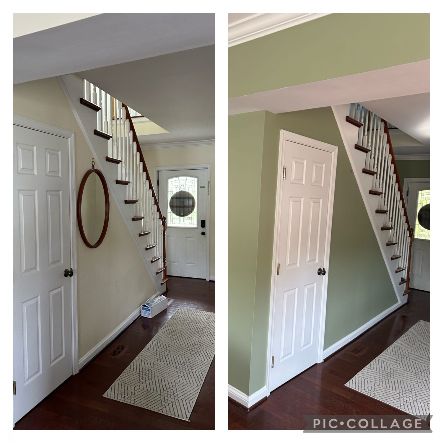 The walls were in great condition prior to painting. The clients wanted a fresh new color to revitalize the interior of their home and sought suggestions that would add a pop of color to the space and make it feel bright.