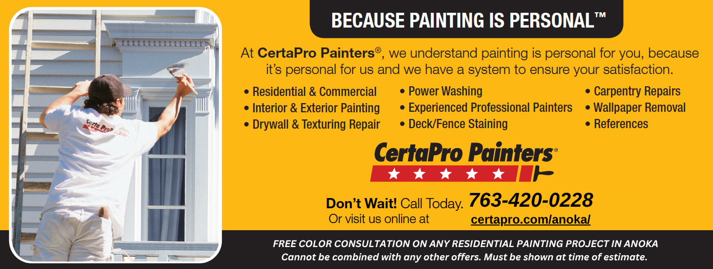 CertaPro Painters® of Anoka, MN is pleased to provide the best interior and exterior painting services to your home or property in and around Anoka, St. Cloud, & Beyond!. We service the following areas: