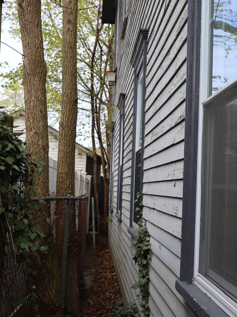 The repairs and painting also required working in some very tight spaces relative to fences, trees, neighboring structures, and power lines, as well as negotiating a very tall front façade.