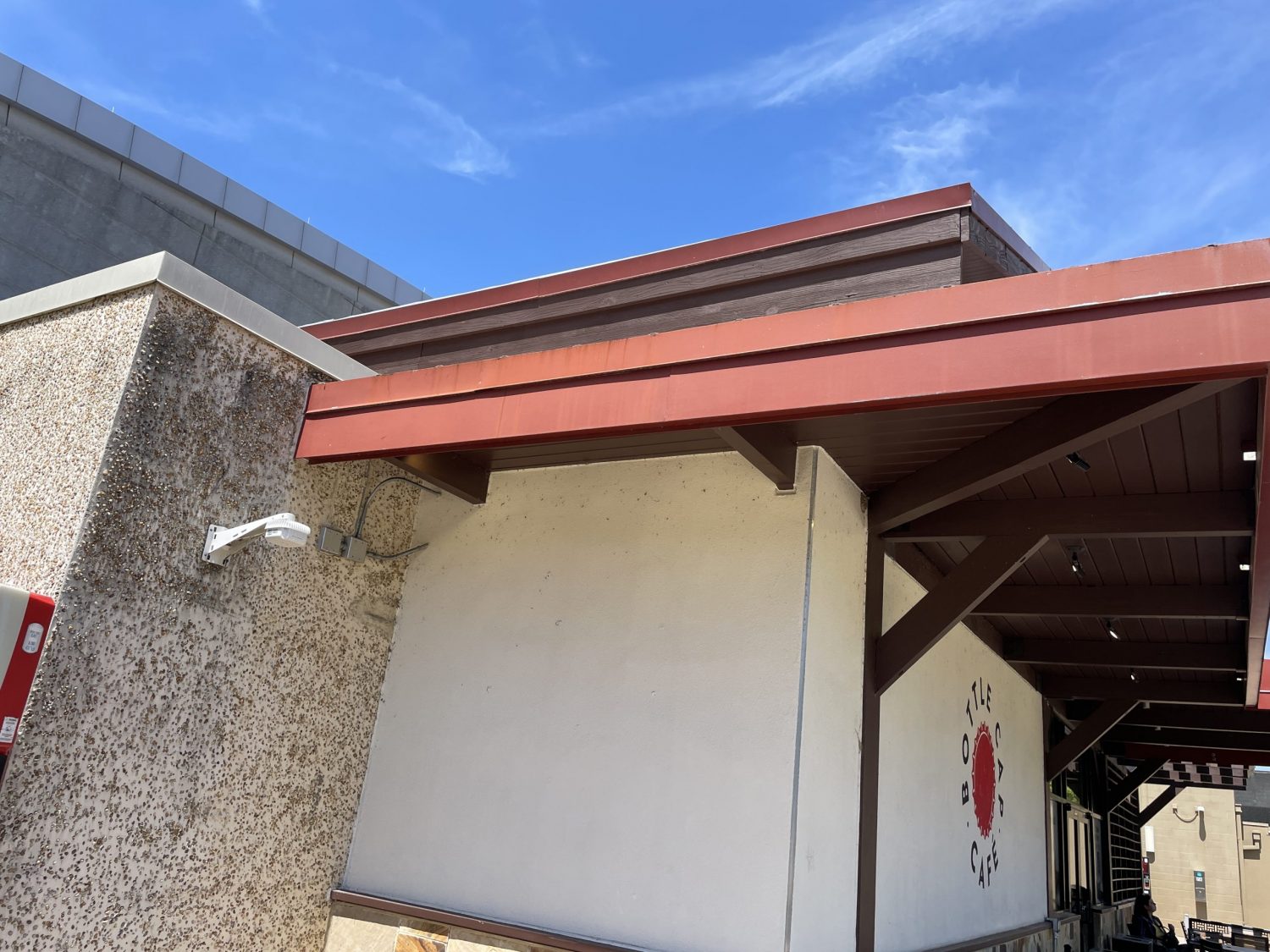 The café’s exterior had become faded and weathered, diminishing its visual impact in a highly visited, experience-driven setting. The objective was to restore vibrancy and give the building a clean, refreshed appearance that complemented the energy of the surrounding attraction.
