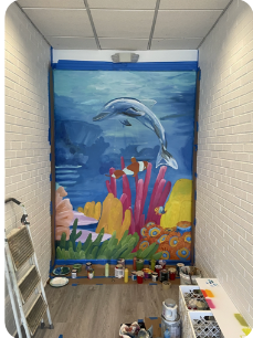 Our professional team offers commercial interior painting for a variety of commercial properties, including office spaces. Here’s an image of a mural painting that our muralist, Lacey Longino created for an office space. If you’re interested in mural work, you can contact our mural artist at [email protected] or (770)262-7451. This beautiful portrait mural showcases Lacey’s amazing talent!