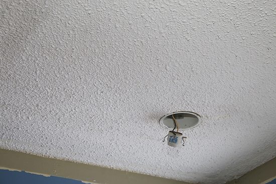 We spray the popcorn surface with small amounts of water to loosen the texture, making it easier to scrape away.