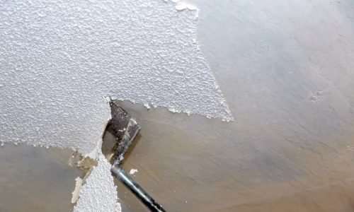 Using specialized tools, we scrape the ceiling to minimize mess and ensure a smooth removal process.