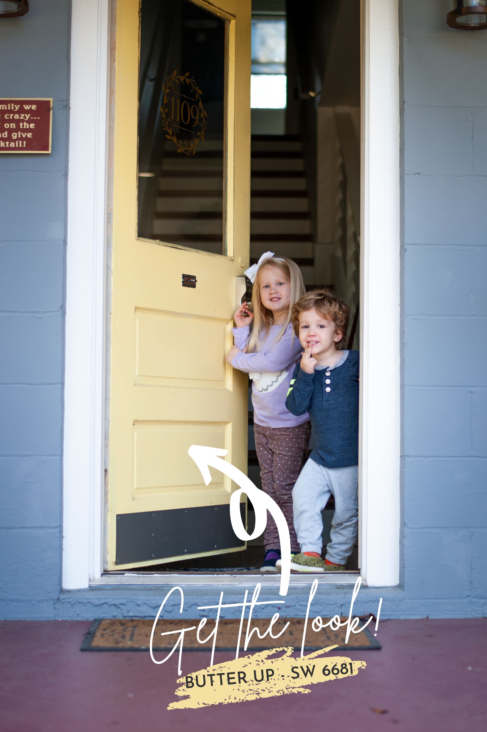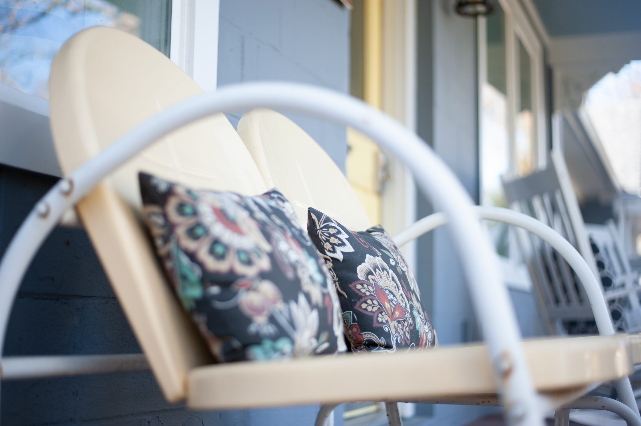 Choosing a new color for your front door is easy and you can change it frequently. A new color for every season, if you like! We love this front door because it matches their yellow glider. And if you try something bold, like this yellow, and you find out you don’t love it… it’s just for a season! Mix it up when the weather changes. If you’re the type of person who gets down in the dumps with dreary weather, you need that bright color to lift your spirits. Go for it!