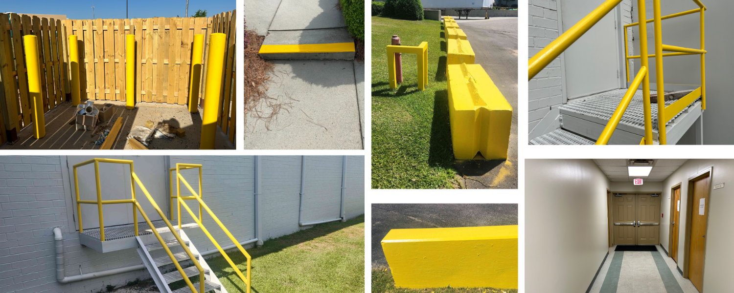 Industrial Enamel (numerous color options)- Used for high-traffic areas and places outside. For example, this type of paint is used on fuel tanks, handrails, stairwells, and walking pathways in industrial buildings.