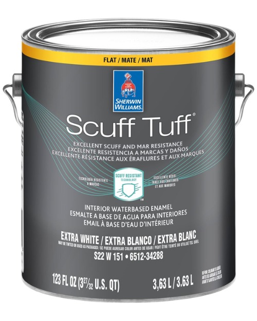 Scuff Tough- Protect your walls against scuffs and scratches with Scuff Tuff Interior Water-based Enamel. This durable paint stands up to the wear and tear of high-traffic areas while resisting burnishing even after frequent washing.