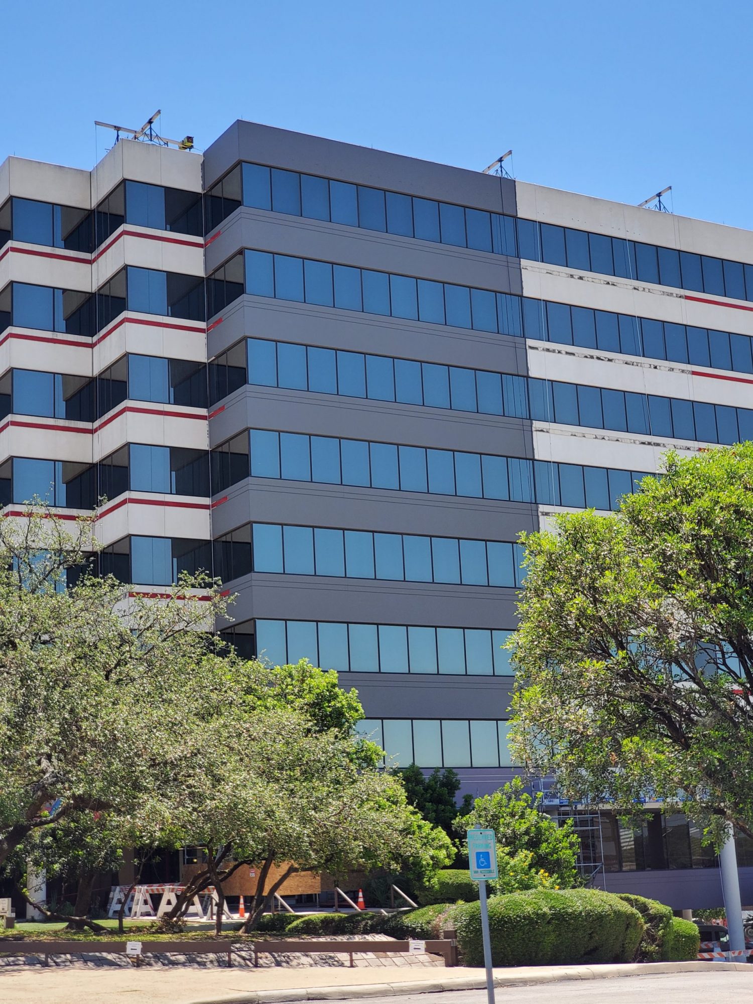 In June 2020, CertaPro Painters® of Austin, TX was contacted to revitalize the exterior of a nine-story office building. The structure contained a dedicated parking garage, multiple areas of exterior handrails, and two ground-to-roof stairwells.