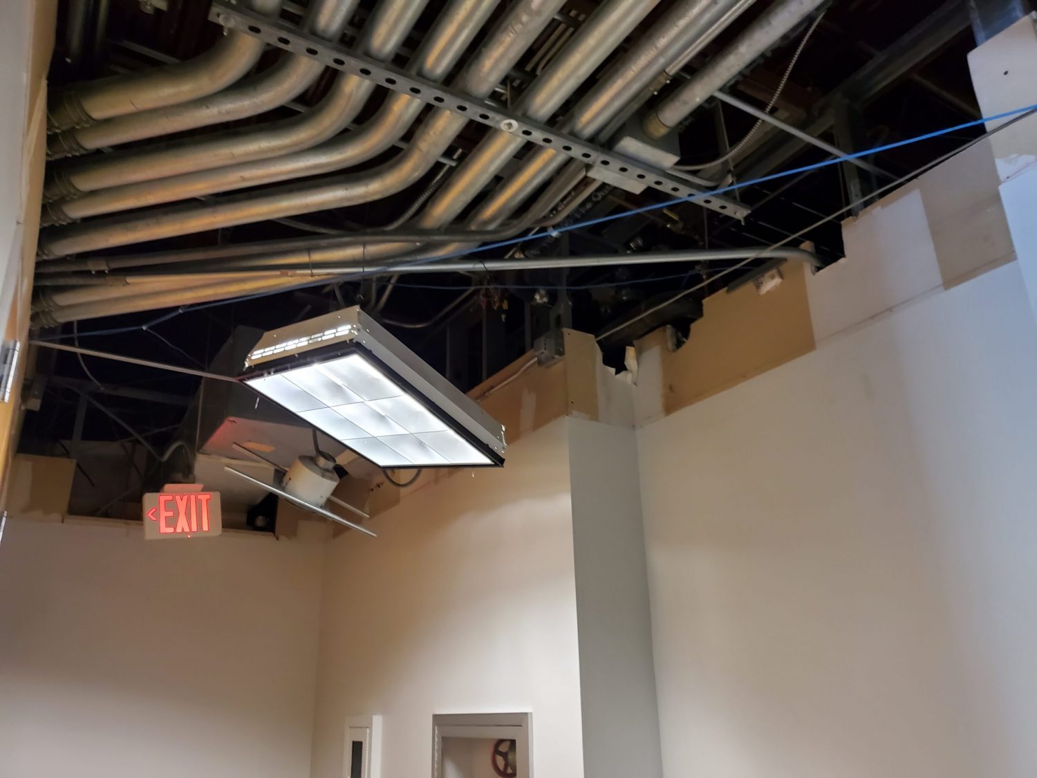 - Extensive removal and replacement of existing bad sheetrock patches above the ceiling tiles