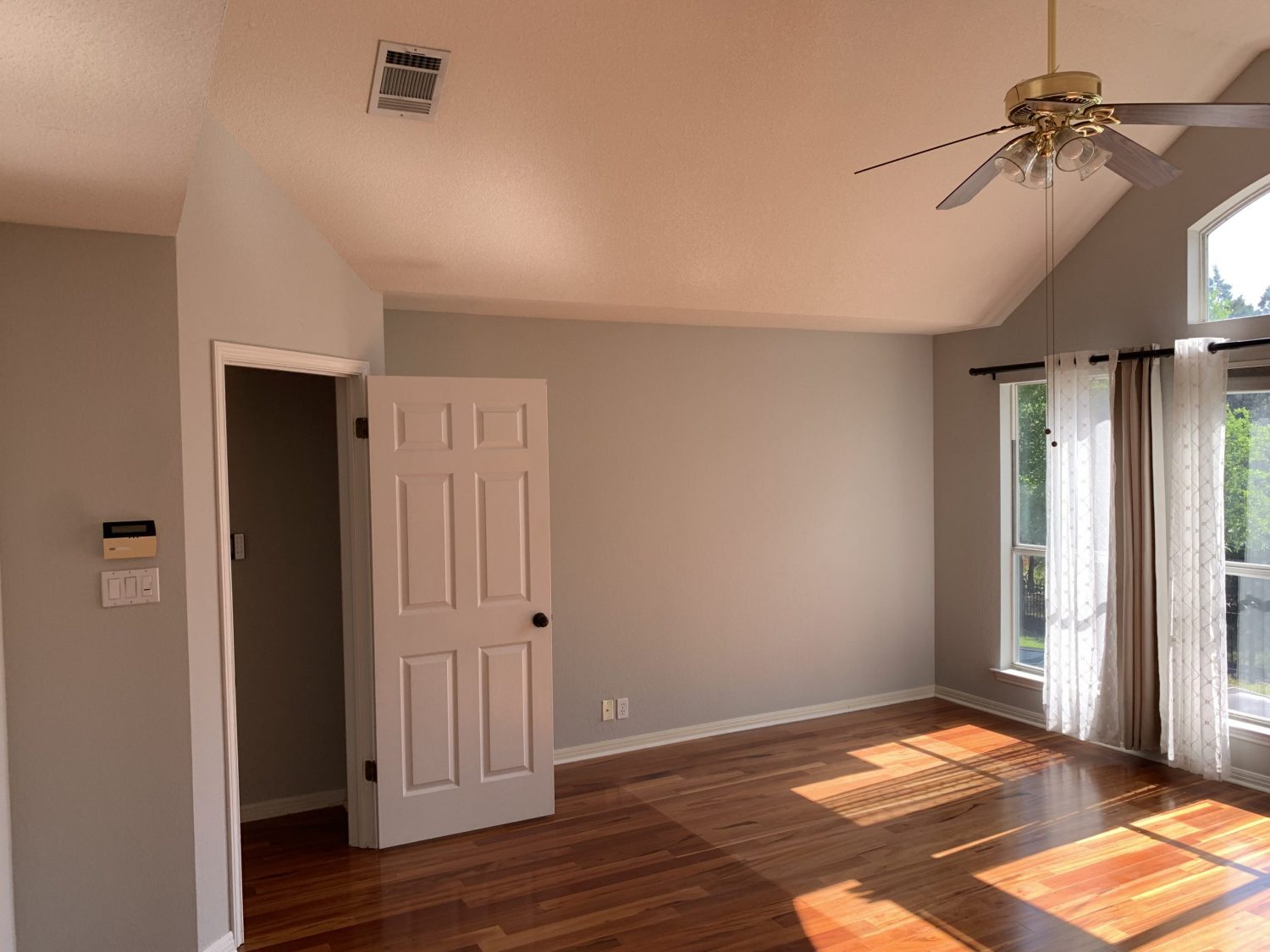 We gave this rental property a facelift by repairing all of the settling cracks, holes, and damaged walls prior to applying 2 coats of Sherwin Williams “Repose Gray” on all walls. We also painted the front and back doors a deep navy blue to add the extra pop the owners were looking for.