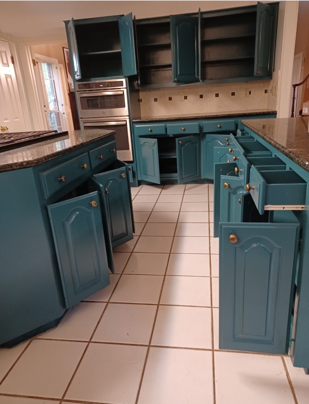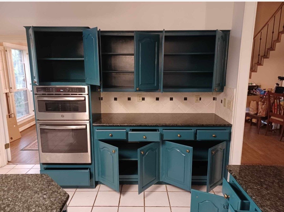 CertaPro Painters of Austin recently painted some old, brown, stained Kitchen cabinets and brought them back to life with a vibrant new color. What a transformation!