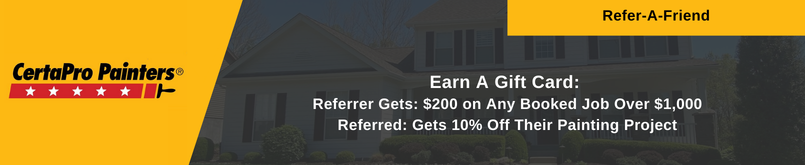 Earn A Gift Card: Referrer Gets: $200 on Any Booked Job Over $1,000 Referred: Gets 10% Off Their Painting Project