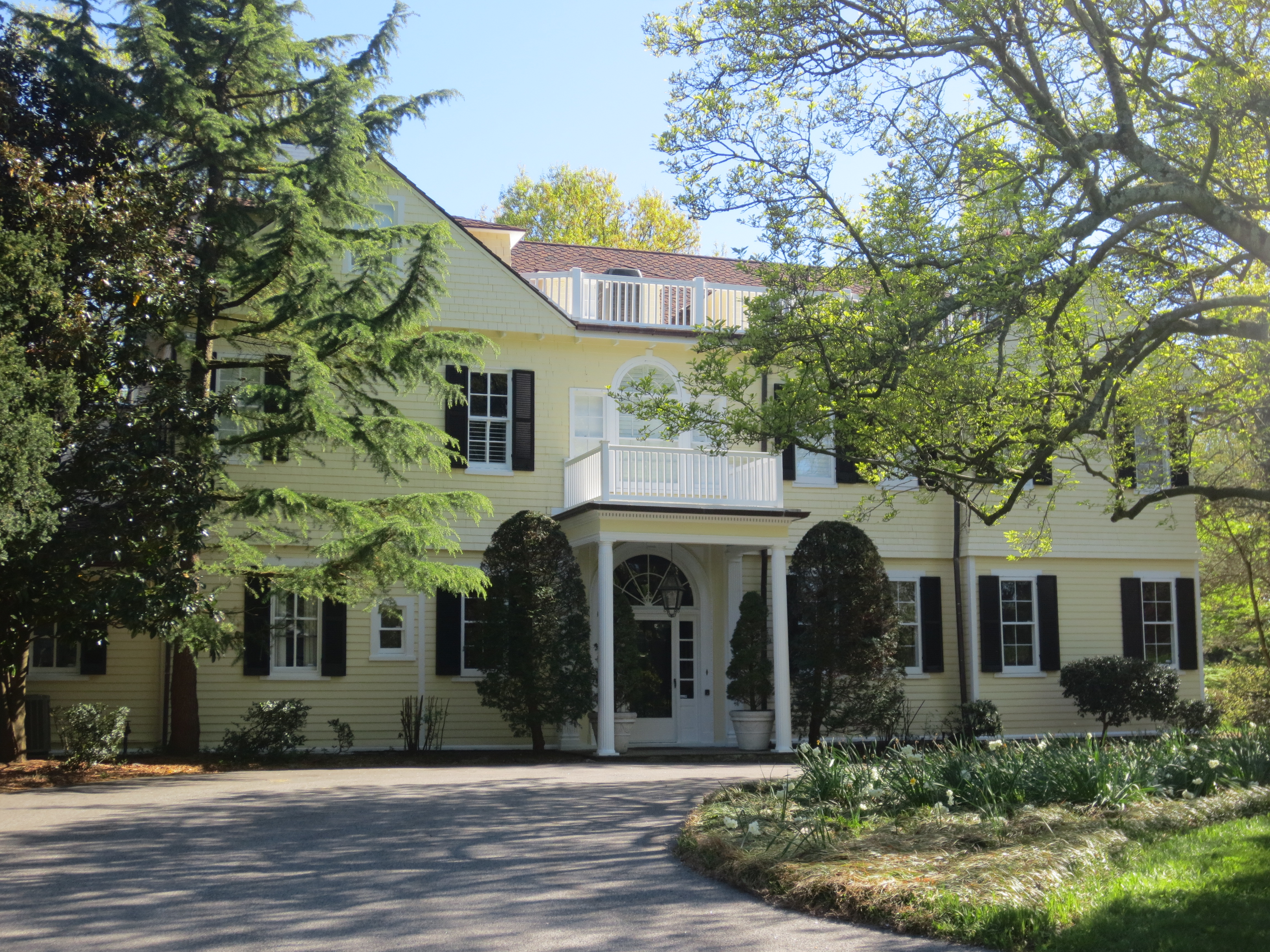 Residential Exterior Painting – Pale Yellow Siding with White Trim and Black Shutters