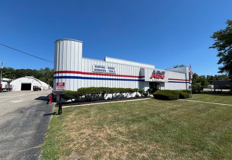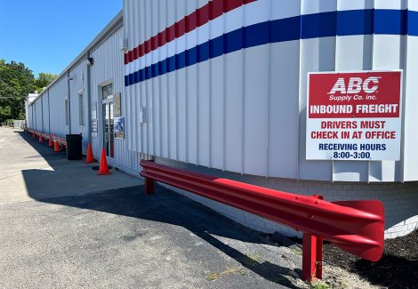 The pros at CertaPro Painters® of Birmingham-Troy painted the exterior of ABC Supply Co in Southfield, including the front slanted roof and metal guard rails. The project began with a thorough cleaning using Simple Green and a high-pressure power washer. There were 4 colors used to revive this building and enhance ABC’s branding with the bold red, white and blue stripes, and the red guard rails.