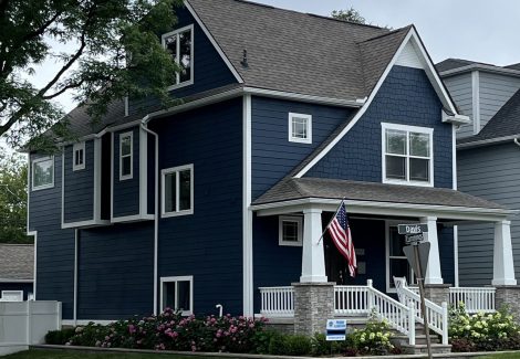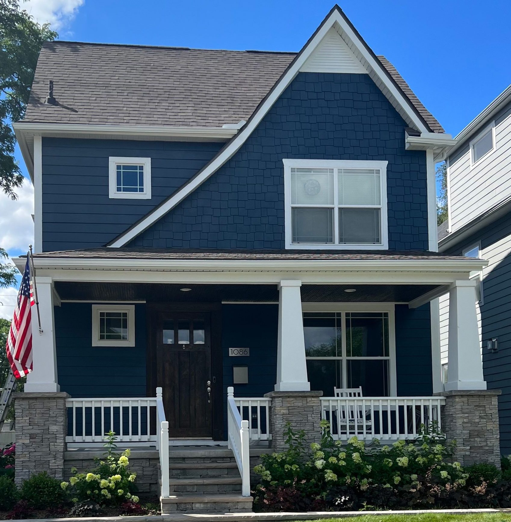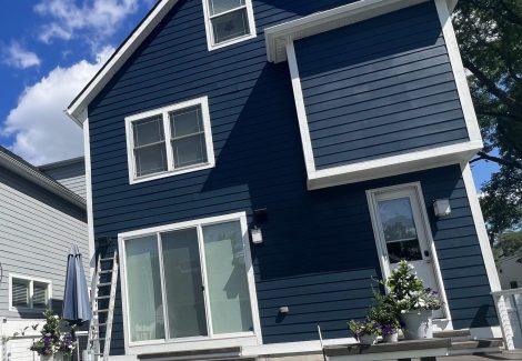 The professional painters of CertaPro Painters of Birmingham-Troy replaced some rotted wood and painted the exterior of this Birmingham home. We used Sherwin Williams premium Emerald paint in a satin sheen with a custom color match for both the navy blue and bright white surfaces.
