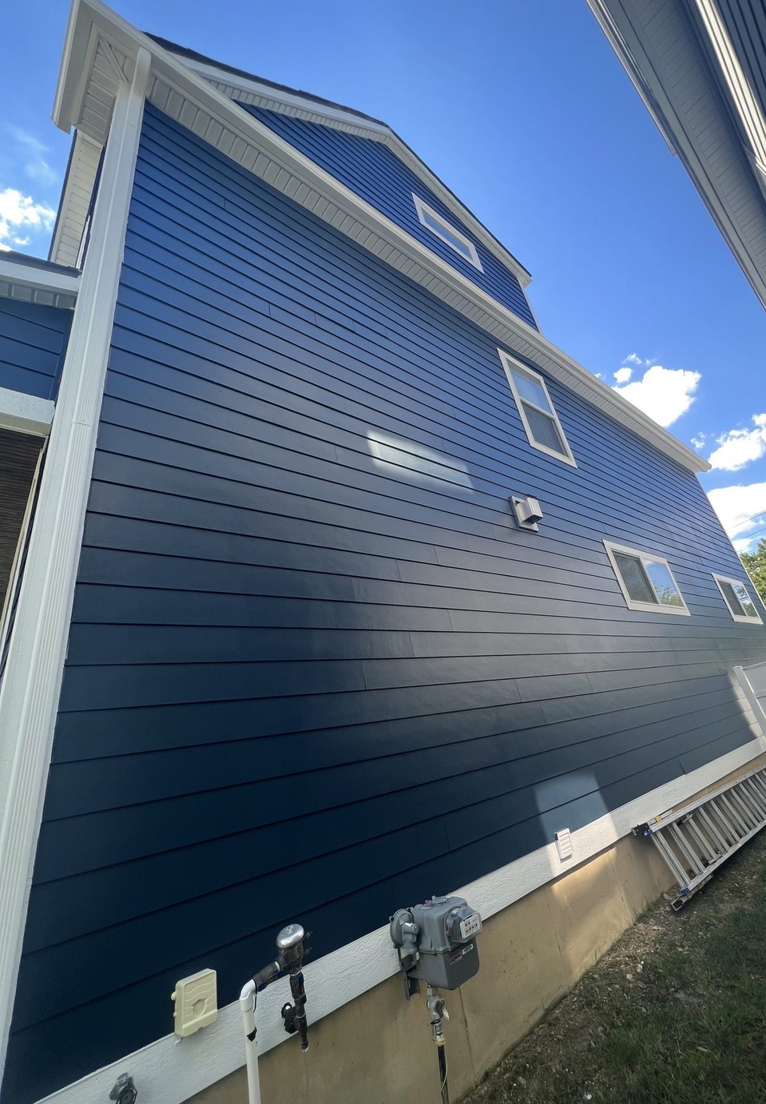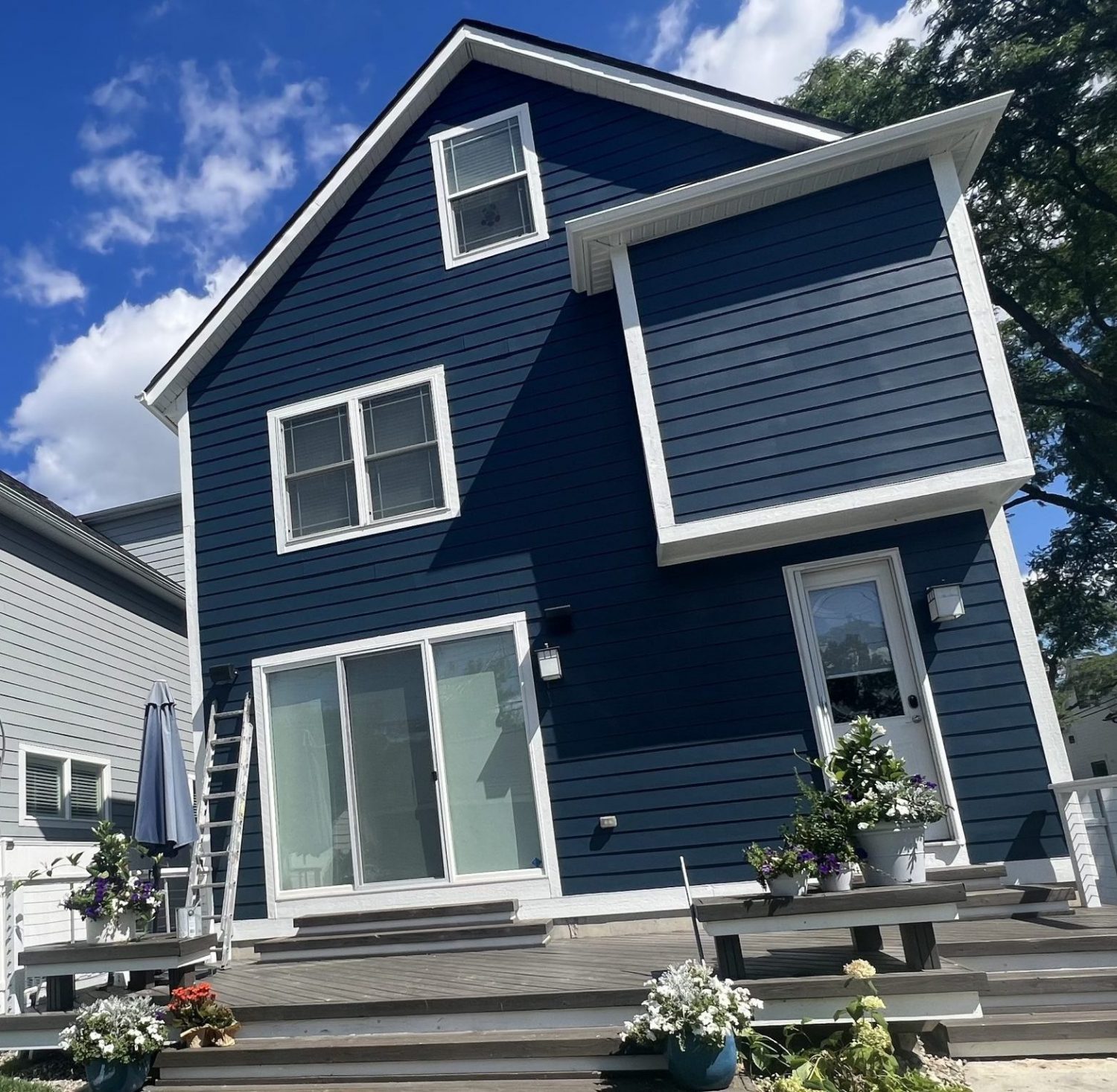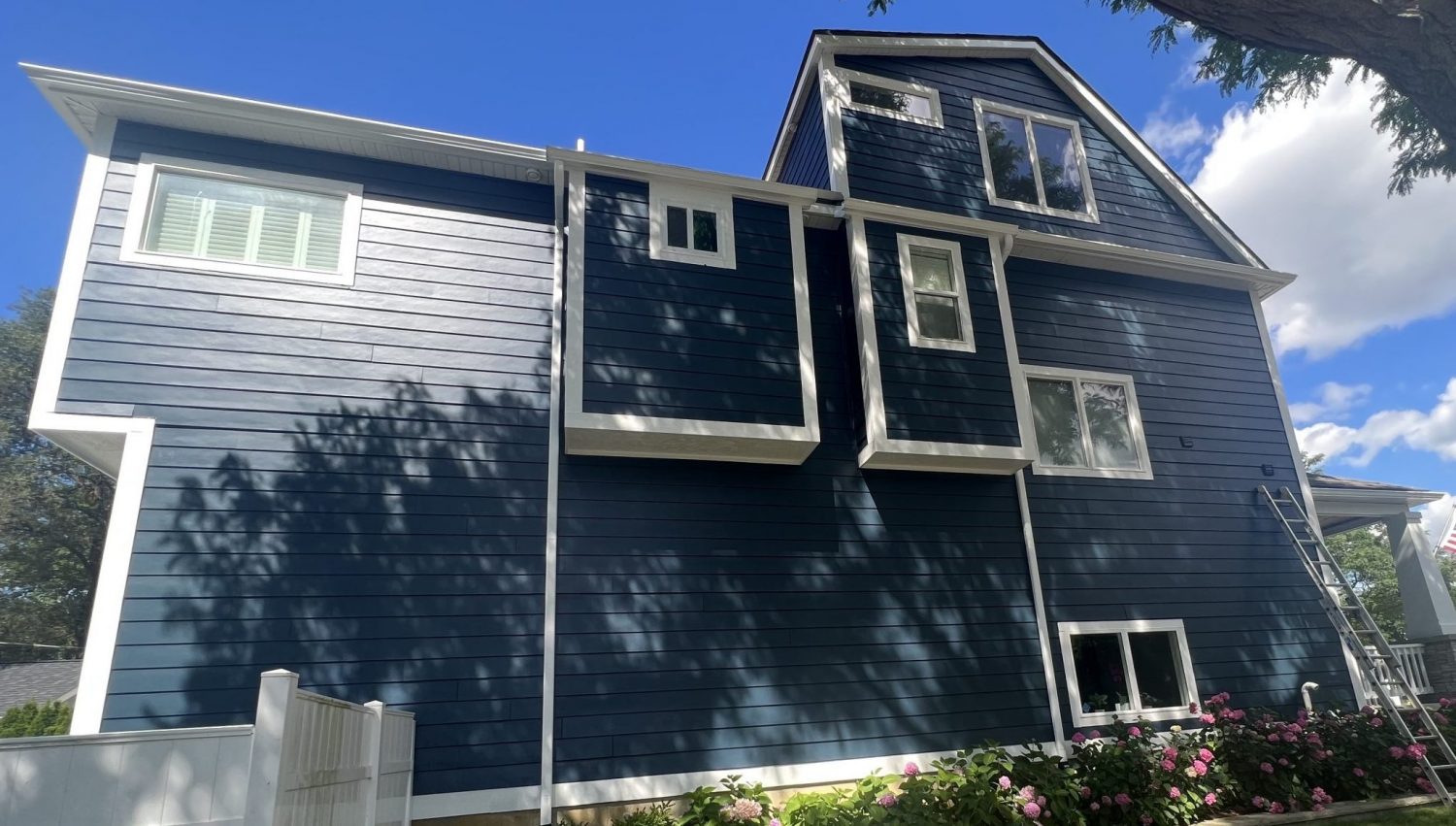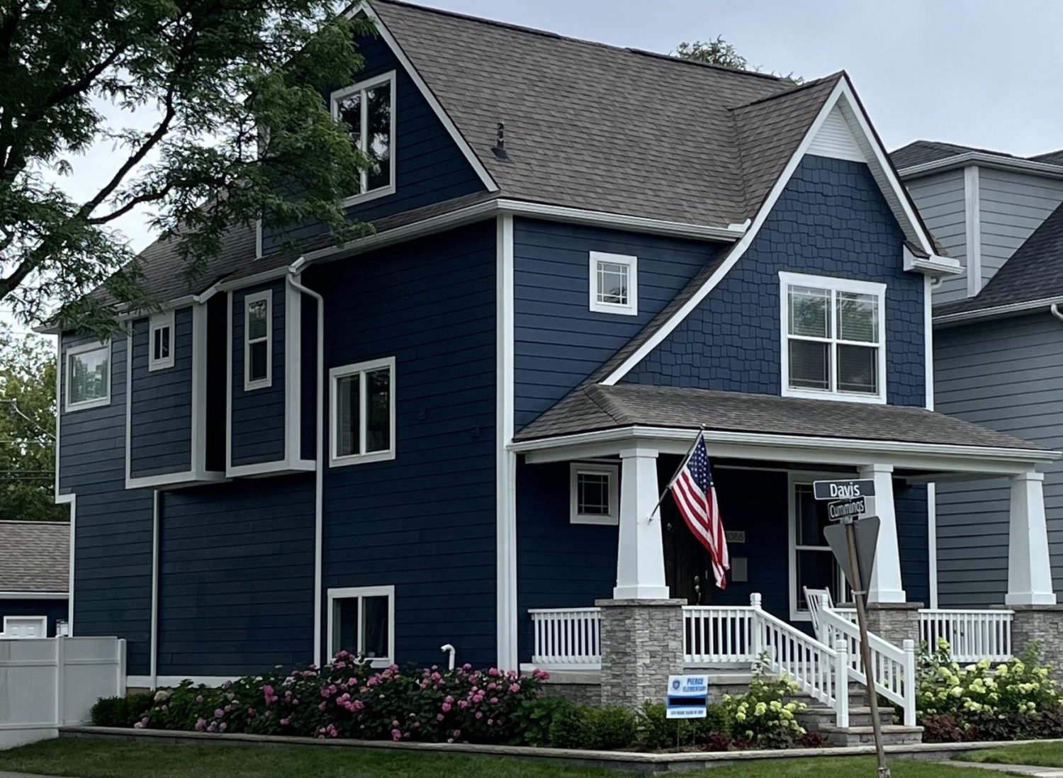 The professional painters of CertaPro Painters of Birmingham-Troy replaced some rotted wood and painted the exterior of this Birmingham home. We used Sherwin Williams premium Emerald paint in a satin sheen with a custom color match for both the navy blue and bright white surfaces.