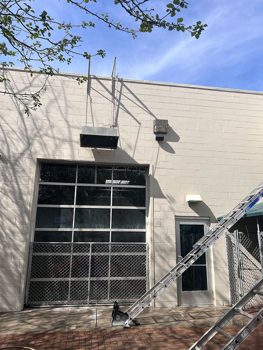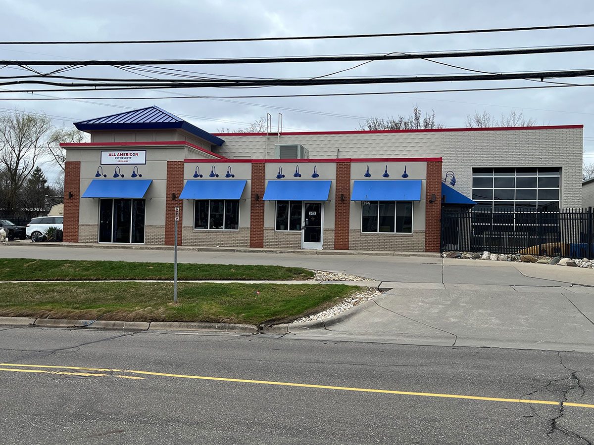 The pros of CertaPro Painters® of Birmingham-Troy re-painted the exterior of this local doggie daycare and boarding facility when they underwent a brand update. We painted the metal roof and trim, the light fixtures, doors, and the stucco and concrete block siding. We started with a full power wash and did some stucco repair before painting. This project included custom color matches, including one that we worked on with Sherwin Williams to match to a Pantone color chosen from All American Pet Resort brand standards. When the matches were established, draw-downs were provided to the client to ensure accuracy.