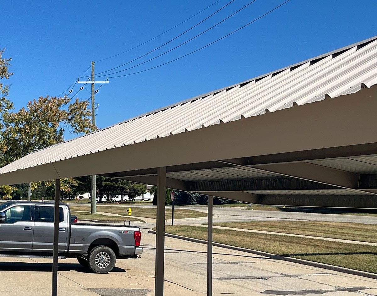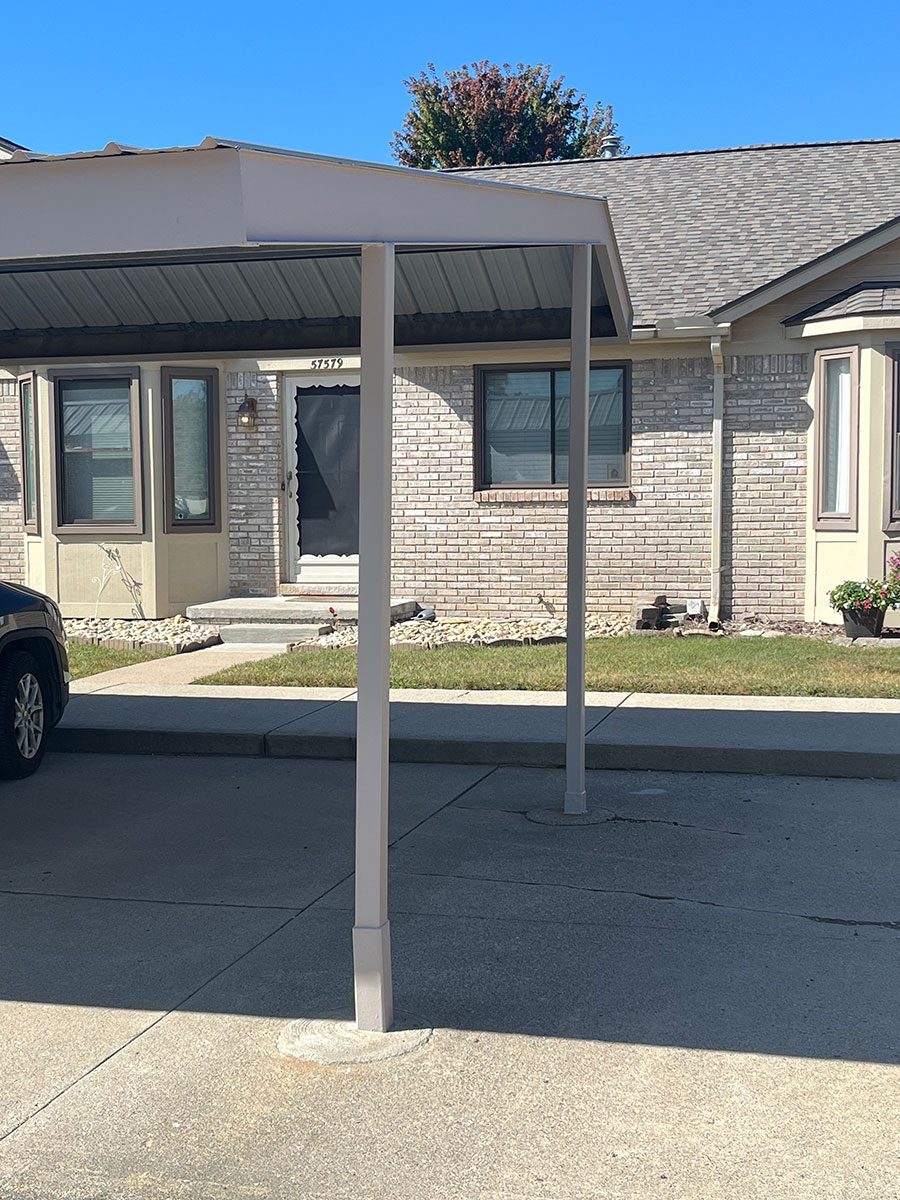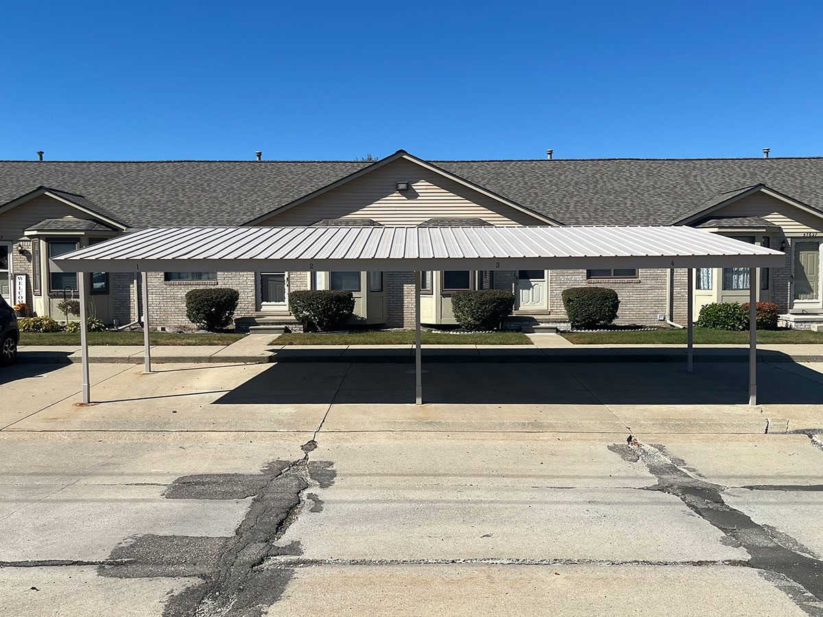 The pros of CertaPro Painters® of Birmingham-Troy re-painted this condo community’s metal carports. Before refinishing them, we did extensive prep work to clean up and smooth out the structures. This included thoroughly cleaning the surface, removing rust and sealing the vulnerable areas, sanding down rough areas with a grinder and using Bondo Metal Reinforced Filler where needed. After applying Sherwin Williams Pro Industrial products, we also installed the parking space numbers.