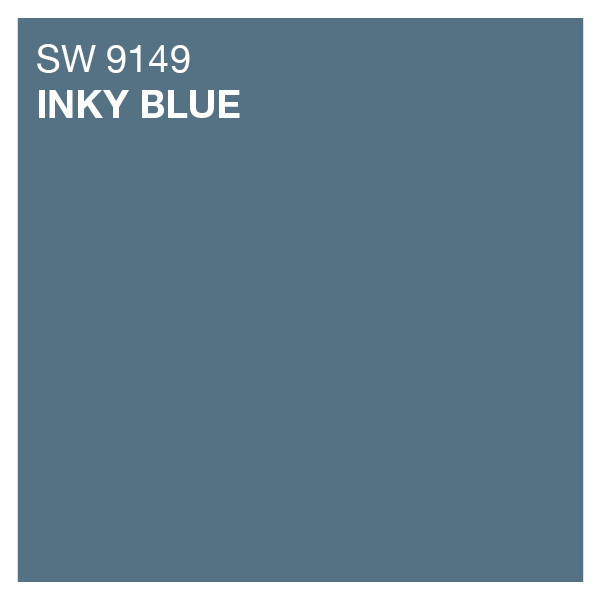 Your home’s exterior will typically consist of three color selections: the body, accent, and trim. We adore Inky Blue as an accent color for a professional exterior painting project. It’s so friendly and welcoming to be the pop of color your home needs to up your curb appeal. Consider Inky Blue for your shutters or front door with a neutral for your home’s primary body color like Sherwin Williams Natural Linen (SW 9109), Marshmallow (SW 7001), or Roycroft Mist Gray (SW 2844).