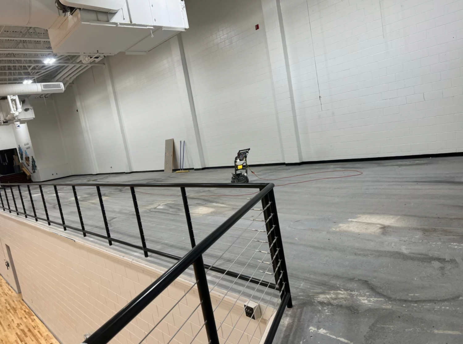 Scope: The project’s primary focus was painting a stairwell in the school gym. This encompassed hand railings, stringers, and baseboards. An additional aspect of the project involved adding a fresh coat to the balcony floor in the gym.