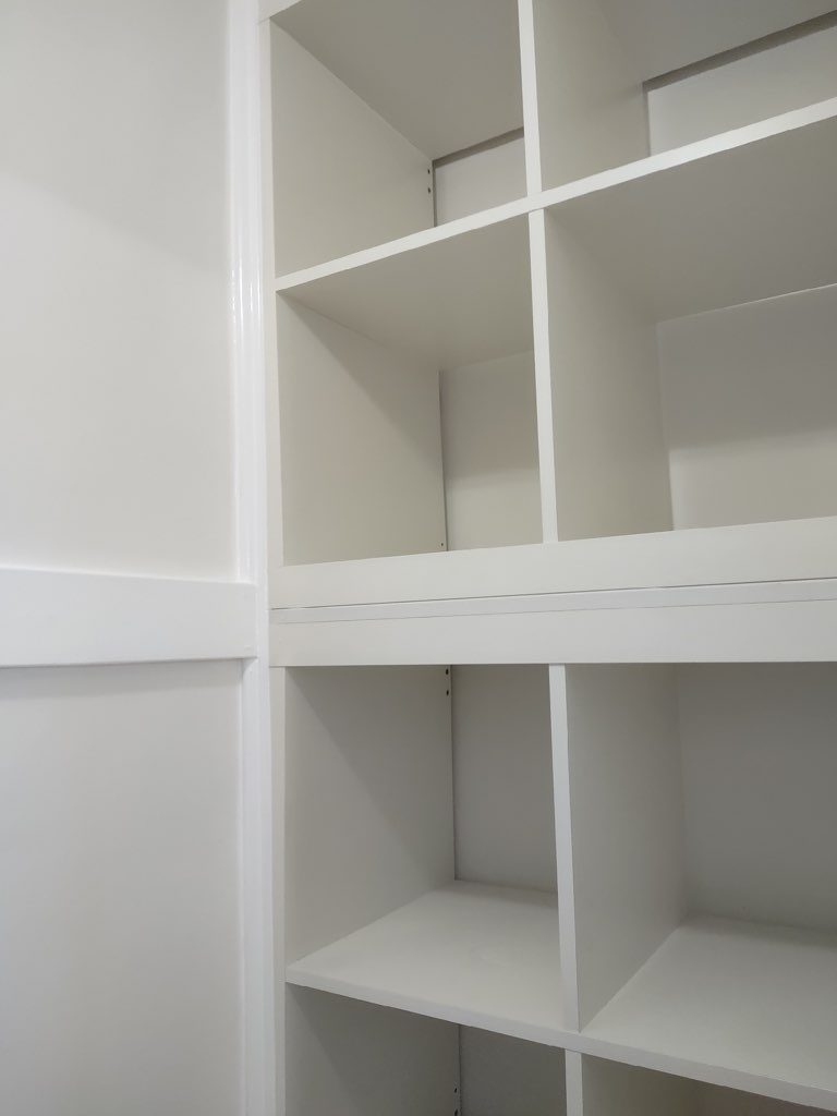 This was a residential interior that our team painted. For the photo of the box in the top corner of the room, our team built the box and painted it. Click here to view the before and after for this part.