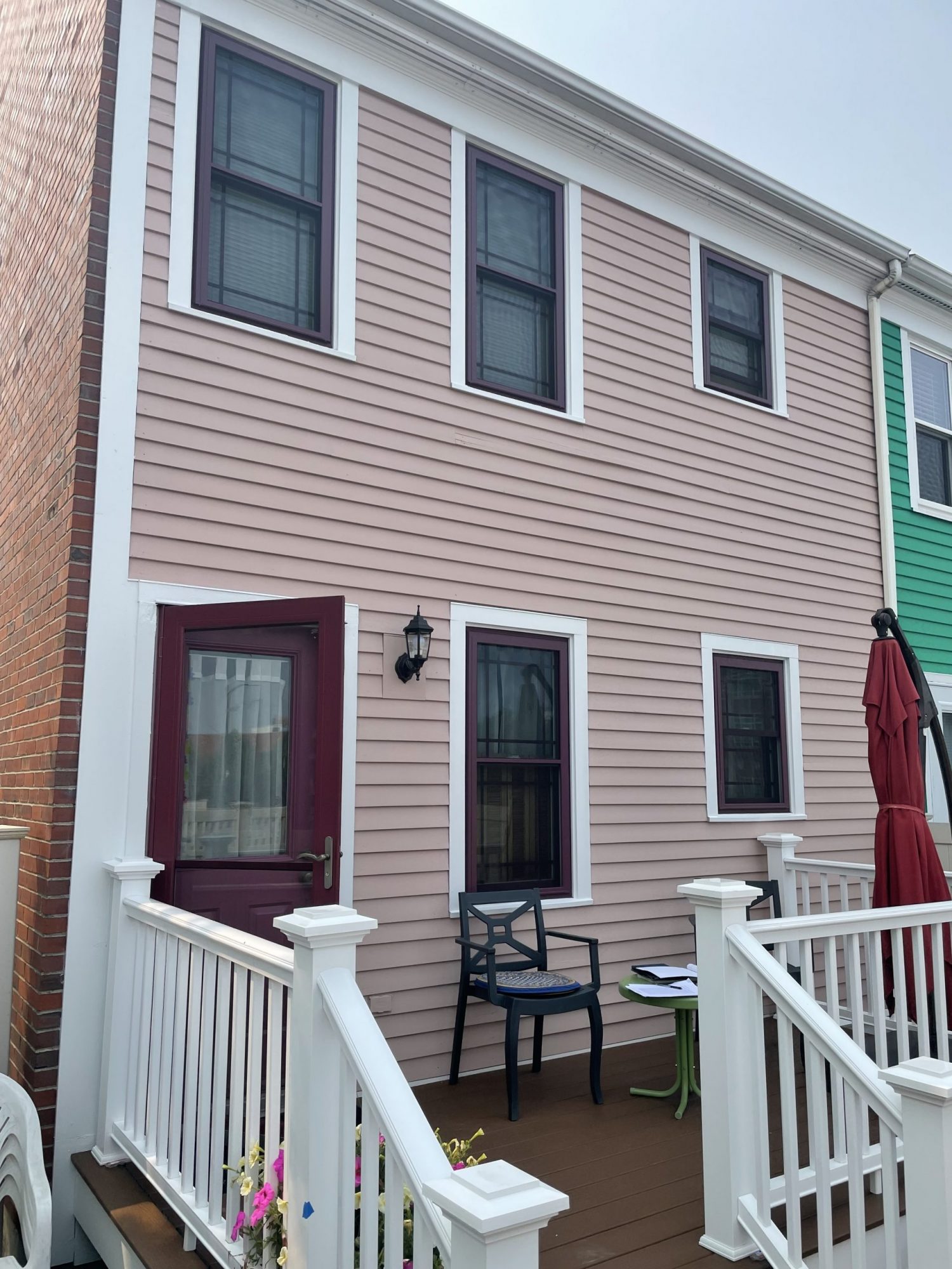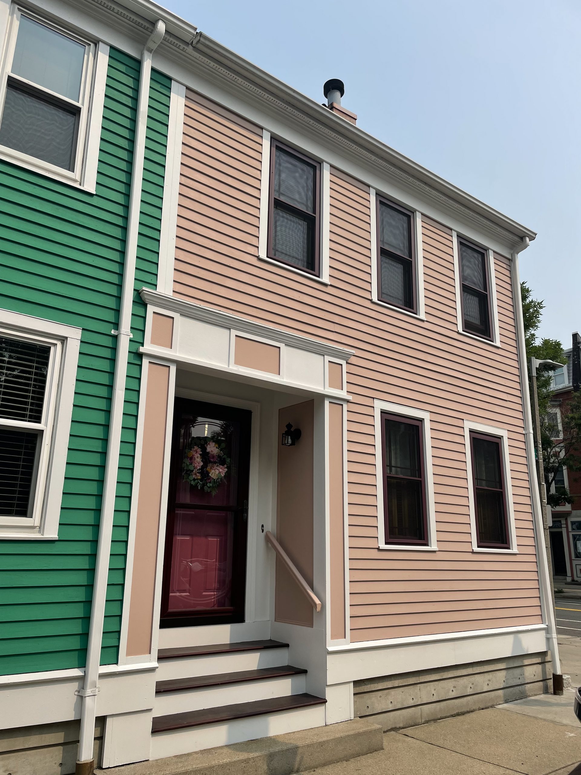 CertaPro Painters of Boston completed this residential exterior in Charlestown, which included painting all soffits, siding, and facia, as well as the front porch entryway, risers, and stair railing.