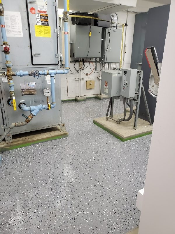 During the project we applied premium grade, green, non-toxic floor coating systems to meet facility standards, and keep any business interruptions to a minimum. After extensive preparation of rusted piping, we utilized a heavy duty, two-component industrial grade coating on the large metal piping at the facilities. We also applied heavy duty safety striping after we completed the floor coating.