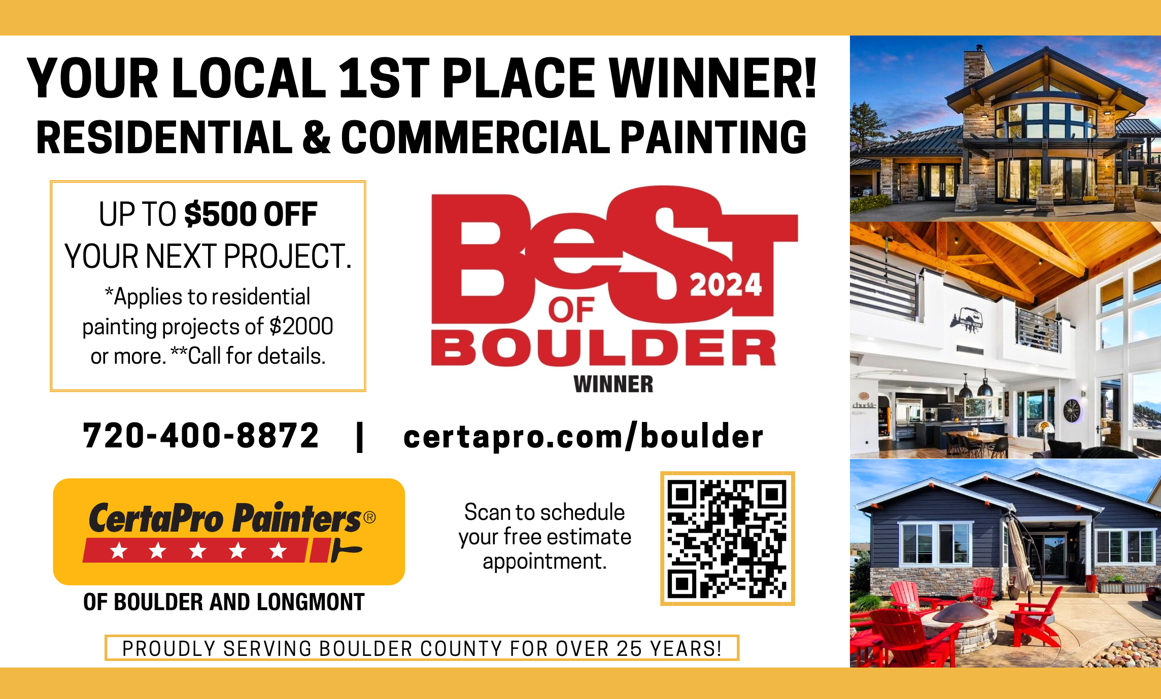 We are proud to announce that we won the Best of Boulder award for painting in the local service area. If you are in need of a residential or commercial painting service, fill out our online form to request a free estimate today!