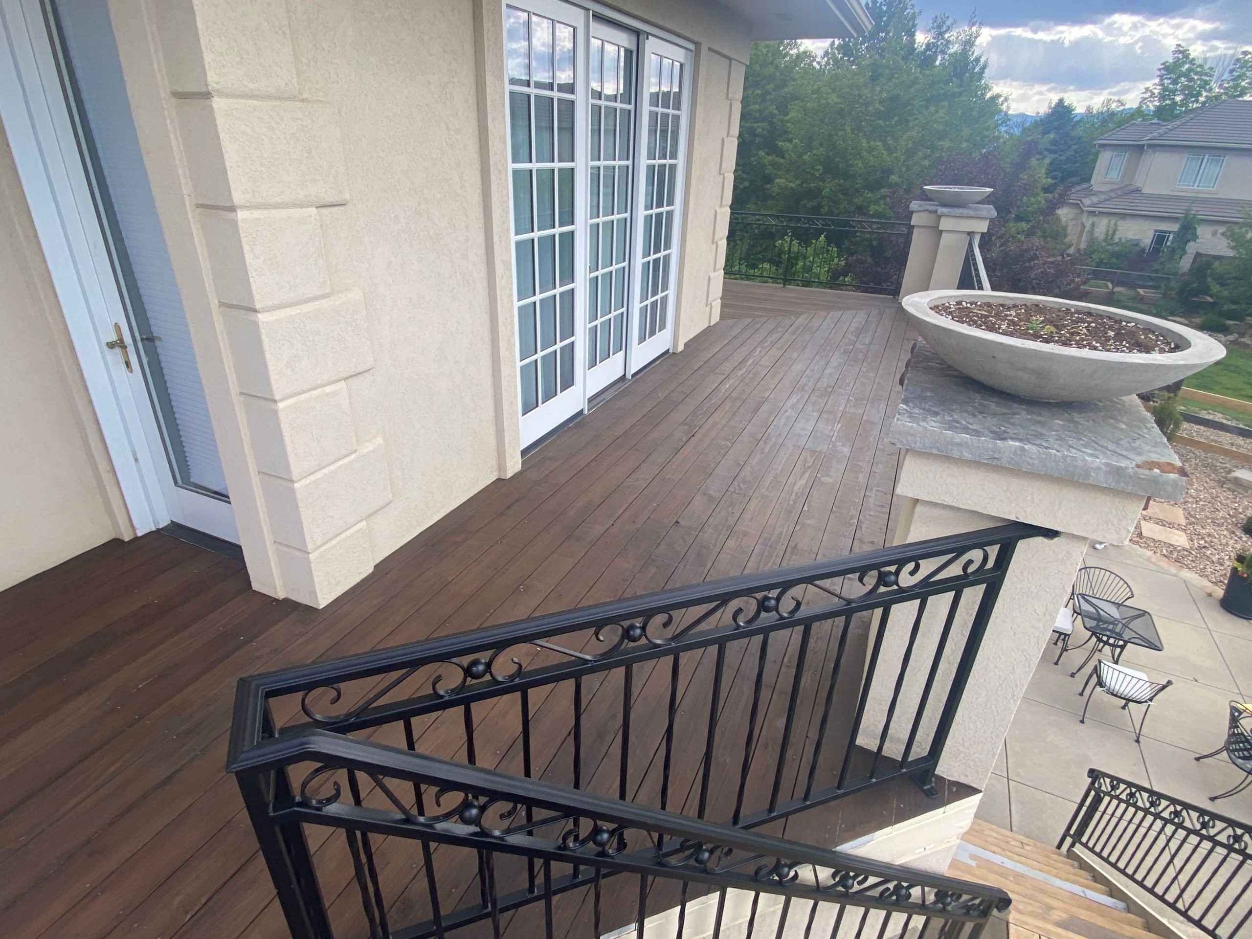 This beautiful Niwot, CO home received a complete exterior deck and railing restoration, including refinishing upper and lower wood decks with a semi-transparent stain to highlight the natural grain and protect against the elements. We also primed and painted the light blue metal railings with durable, corrosion-resistant coatings, creating a refreshed outdoor space that blends beautifully with the property’s scenic surroundings. See the transformation in these photos.