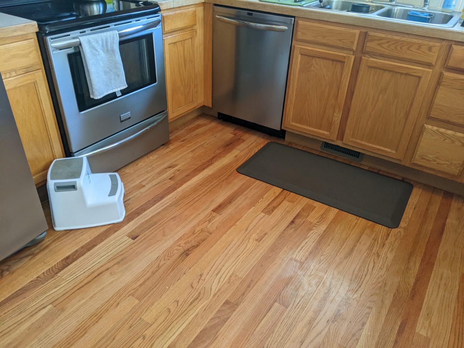 Painting all of the kitchen cabinetry for the first time as it was previously stained wood. Drywall repairs/patching. Repainting walls in most rooms and certain ceilings. Detailed masking to exclude and protect their trim and doors. Extensive preparation and staging to create a sealed environment so we could achieve the sprayed finish the customer desired on all of the cabinetry.