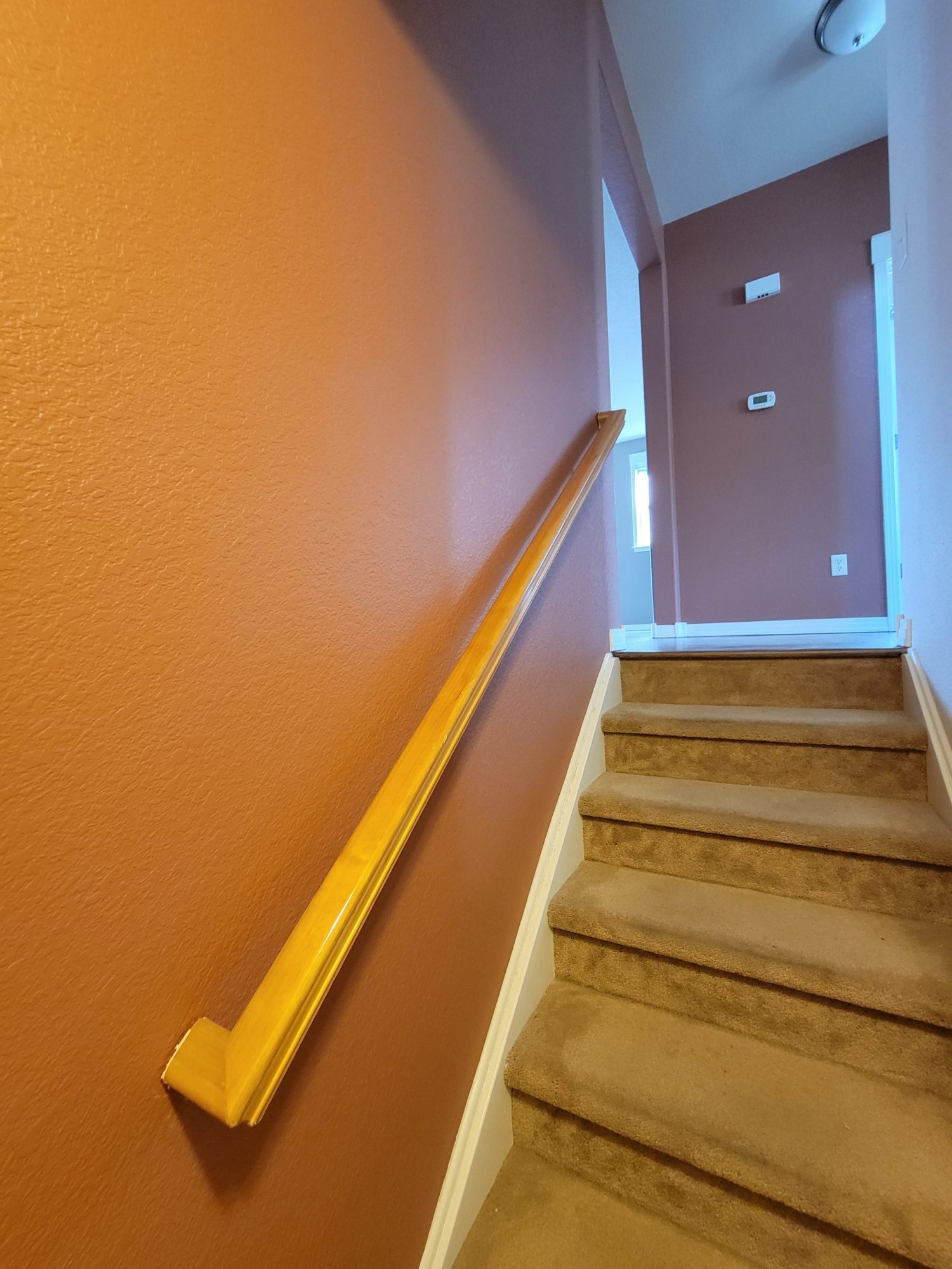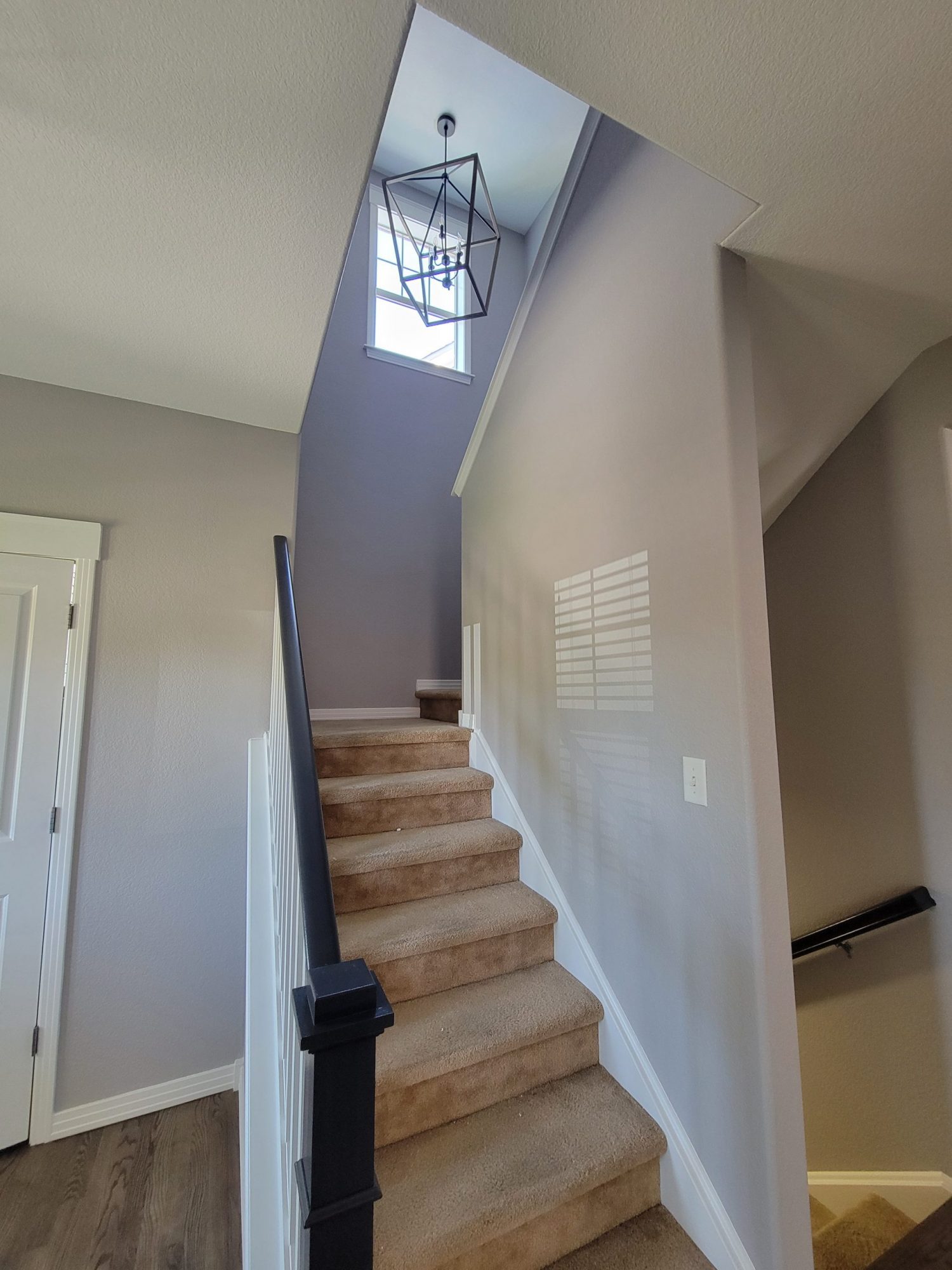 Our specialized stain to paint process, as well as painting of walls, ceiling, trim, handrails, and doors throughout the home.