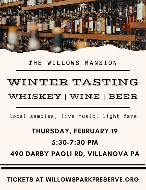 Sip, sample, and socialize at the Willows Mansion in Villanova. Discover whiskey, wine, and beer from a curated selection of local makers, paired with live music and light bites. CertaPro Painters of the Mainline is sponsoring this event. Contact us at [email protected] for a complimentary ticket. Proceeds support the Willows Park Preserve.