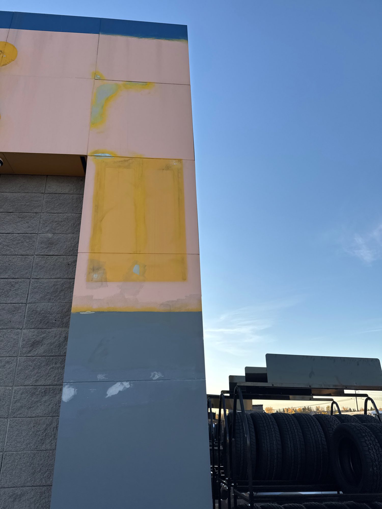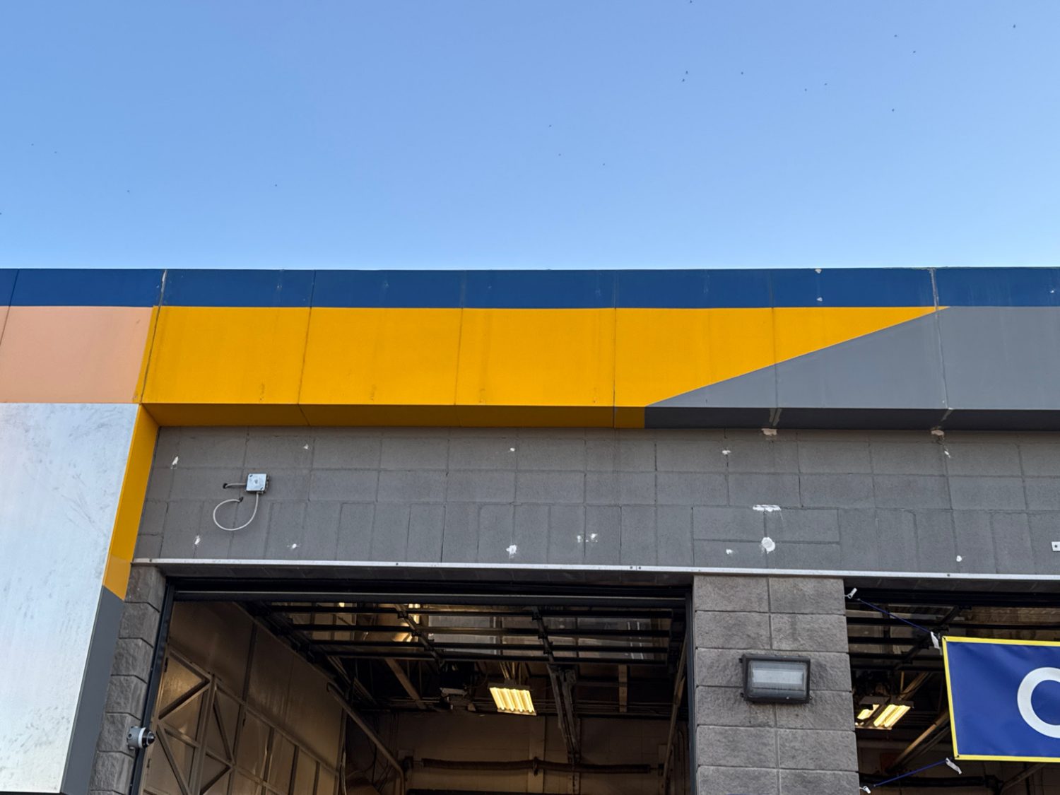 The Mr. Lube facility showed significant paint deterioration, including faded colors, peeling paint, and weathered surfaces in need of restoration. Before beginning the project, the experts at CertaPro Painters® of Calgary & Central Alberta assessed the area and documented key areas needing attention with photos.