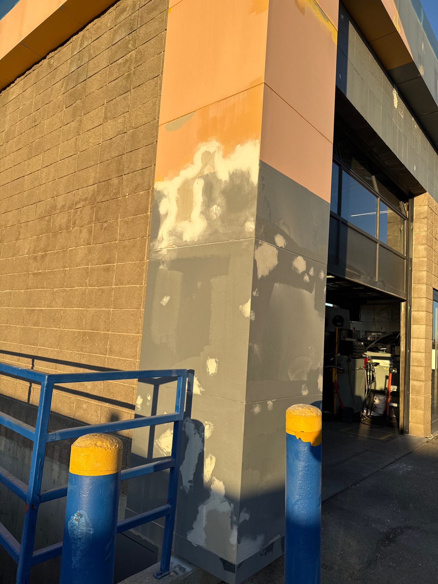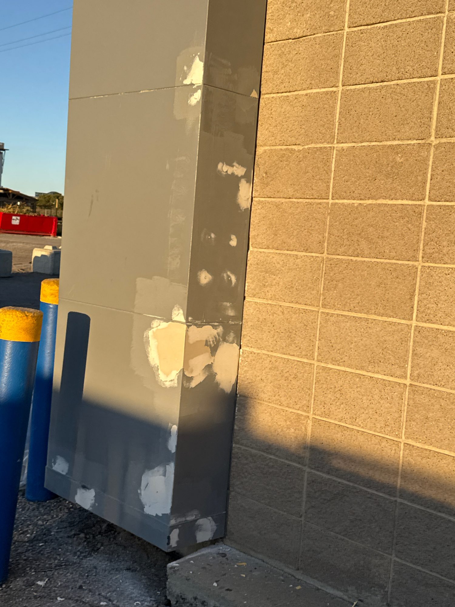 Given the variety of substrates and the extent of the existing paint failure, meticulous preparation was essential. The crew expertly executed the project using advanced masking techniques and airless spray application to deliver a flawless, long-lasting finish. The end result was a refreshed, professional appearance that aligned with the brand’s nationwide rebranding initiative while ensuring improved durability and aesthetic appeal.