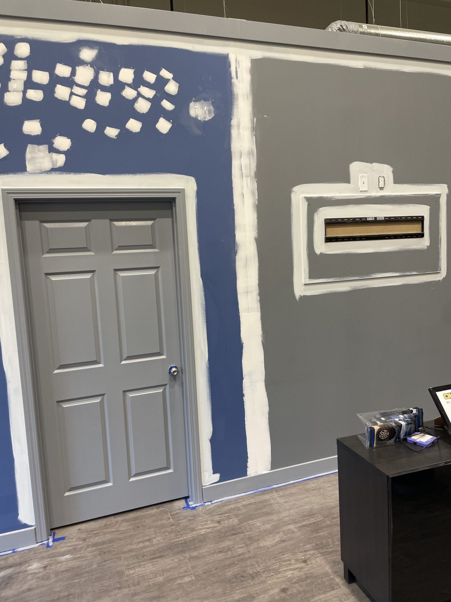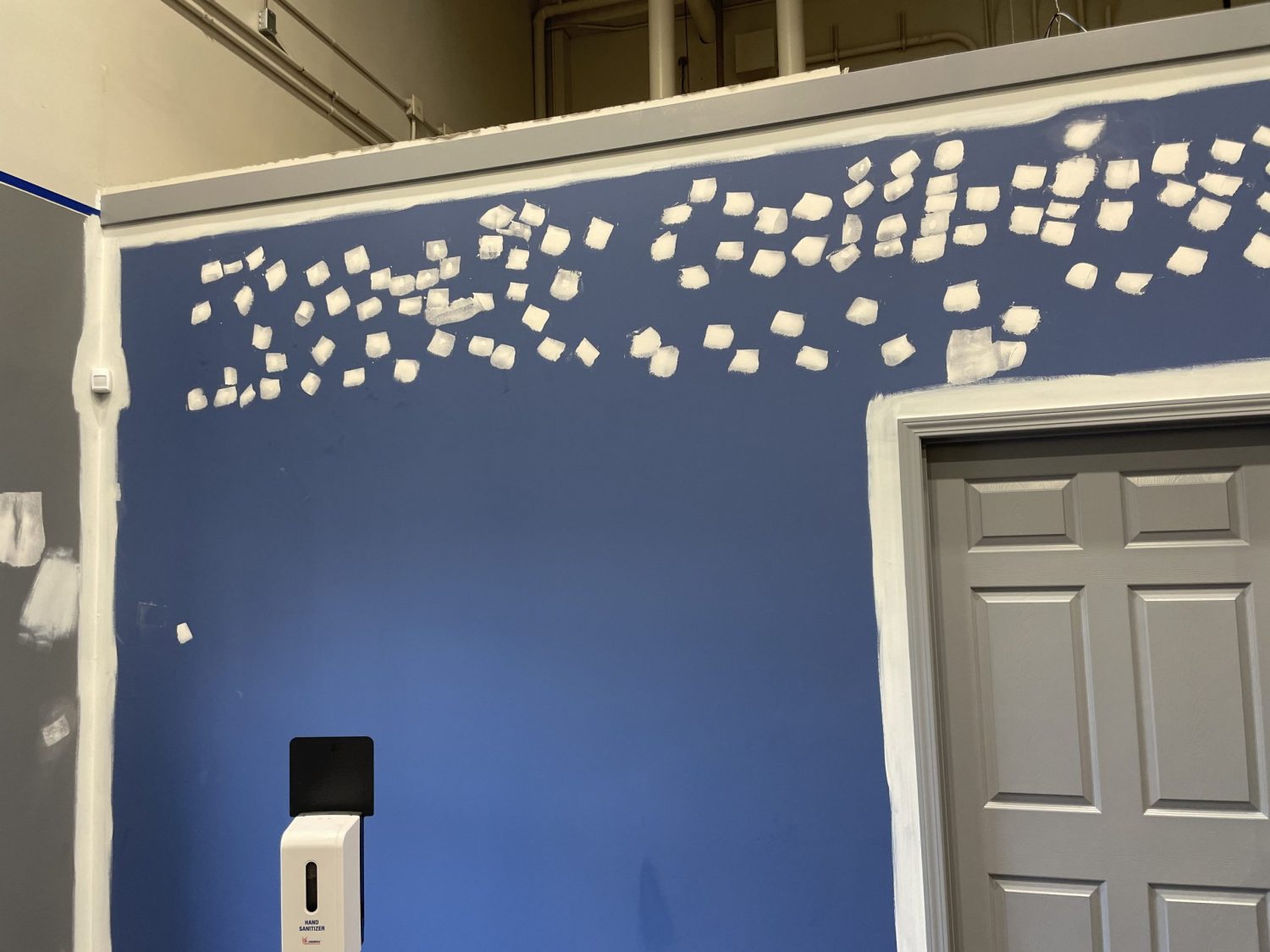 The project in-progress was progressing according to schedule. Notice the painters tape on the floor to mark the project area.