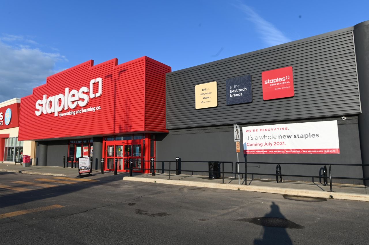 Our painting contractors completed a full interior and exterior painting service at the Staples in Edmonton, AB.