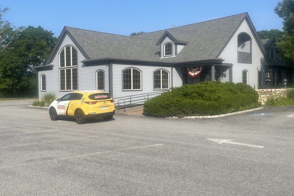 Process: The project entailed a full building wash using eco-friendly chemicals. We washed the rear shingles of the building with the same chemical to bring them back to a more natural appearance. These shingles turned black from the sun burning them. The project also involved scraping and sanding to remove loose or peeling paint and stains. We had to replace some trim boards and water table boards that were rotted with new pine boards. We painted the aluminum gutters along with the metal handrail at the entrance to the restaurant. We wanted to make sure it matched the new color scheme. We also stained a rear entrance mahogany steps, landing, and railing. The building went from a tan color scheme to a gray color scheme. They had to keep the aluminum window frames in the old tan color scheme because that was part of the original window. Our main challenge for this project was working around the hours of the restaurant. The restaurant opened at 4:00 PM with workers getting there around 2:00 PM. This was not that difficult though and the restaurant was very easy to work with.