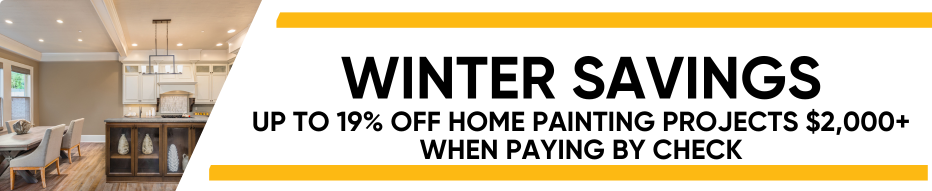 Mention this coupon at the time of your estimate to receive up to 19% off your home painting project. Offer is valid for 15% off when paying by credit card and you receive an additional 4% when paying by check for a total of 19% off.
