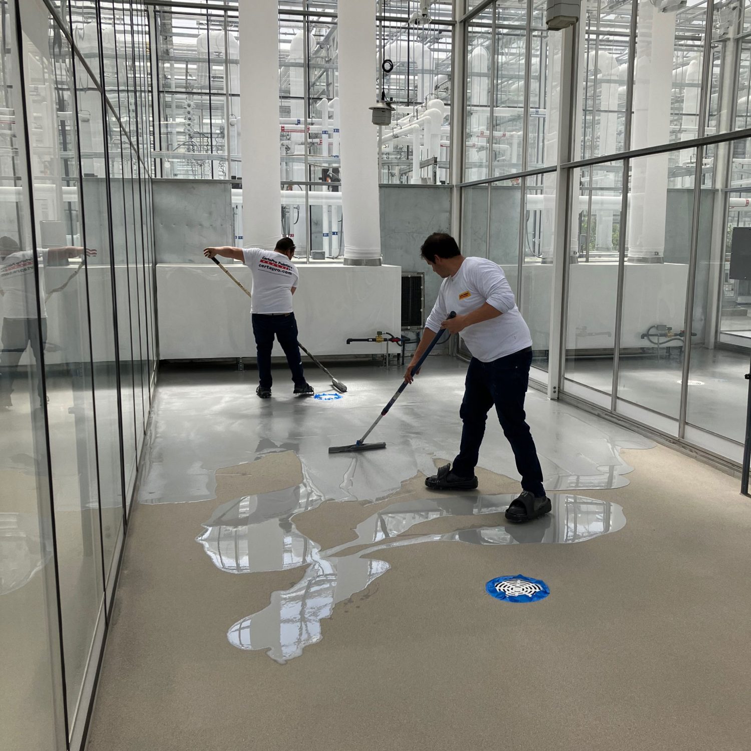 - Applied one coat of Amorseal 33 Epoxy Primer/Sealer to the prepared floor.