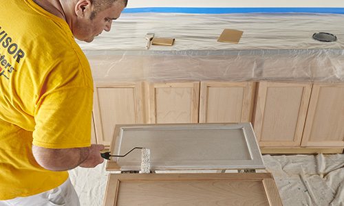 A fresh coat of paint can completely change the look and feel of your kitchen. The photos below give you a quick look at what the cabinet painting process typically involves.