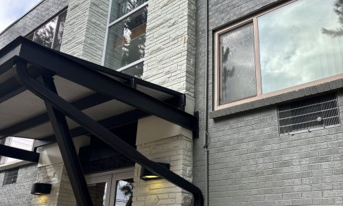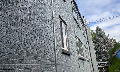 Each surface received a coating system specifically selected for adhesion and exterior performance. Brick surfaces were primed with Loxon Primer and Sealer and finished with SuperPaint Exterior. Radon pipes were treated with Extreme Bond Primer followed by SuperPaint Exterior for long-lasting coverage. Metal surfaces were primed with ProCryl Primer and top coated with SuperPaint Exterior to prevent premature failure and improve durability.