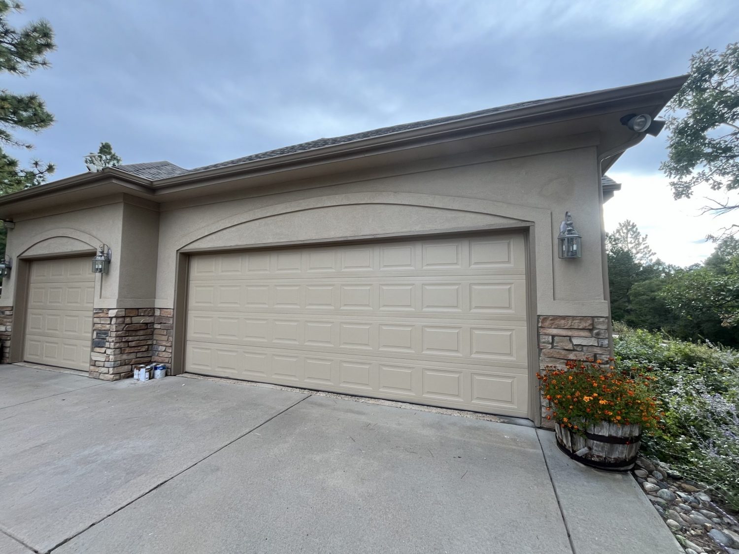 The team at CertaPro Painters® of Castle Rock, CO elevated the curb appeal of this Larkspur, CO home with this comprehensive paint update that included the garage doors, wooden deck, and porch, as well as elements such as railings, gutters and downspouts, and more.