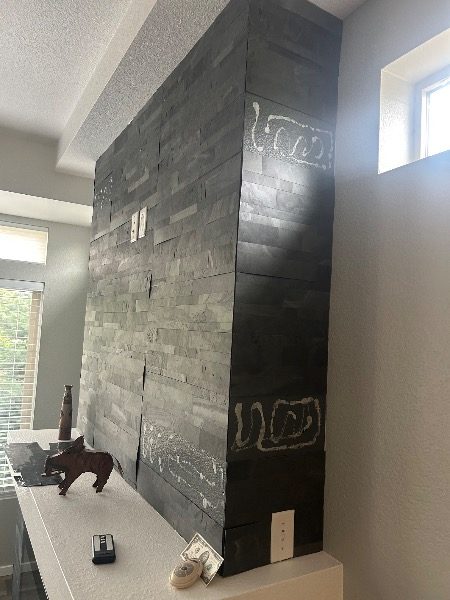 Our team completed the restoration of the mantle area, beginning with the careful removal of each panel. We thoroughly scraped away residual adhesive, then applied joint compound to create a smooth, even surface. Once the surface was properly prepared, we primed and finished the area with a clean coat of paint for a refined final result.